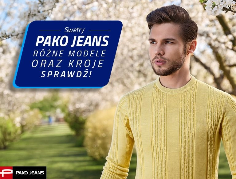 Lekki, Męski Sweter Bawełniany - Pako Jeans - Żółty, Faktura Materiału