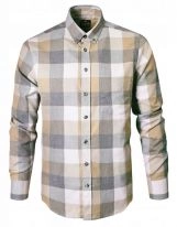 Męski Szalik z Wełną i Jedwabiem - V. Fraas - Beżowy w Kratę