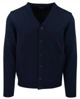 Rozpinany Sweter na Guziki - Lasota - Granatowy, z Kieszeniami