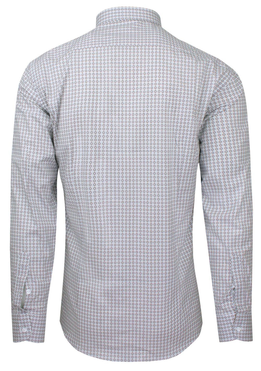 Bawełniana Koszula Elegancka, Slim - Victorio - Brązowo-Niebieski Drobny Wzór