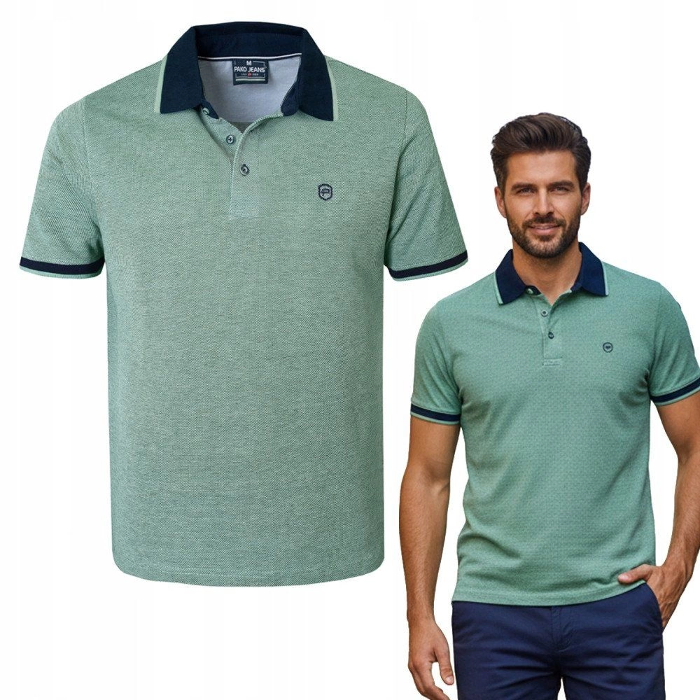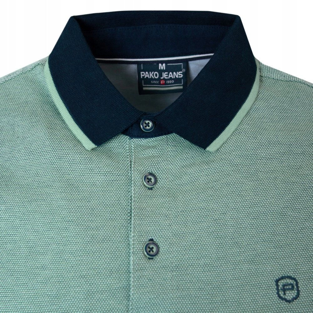 Bawełniana, Męska Koszulka Polo - Pako Jeans - Bladozielony Melanż