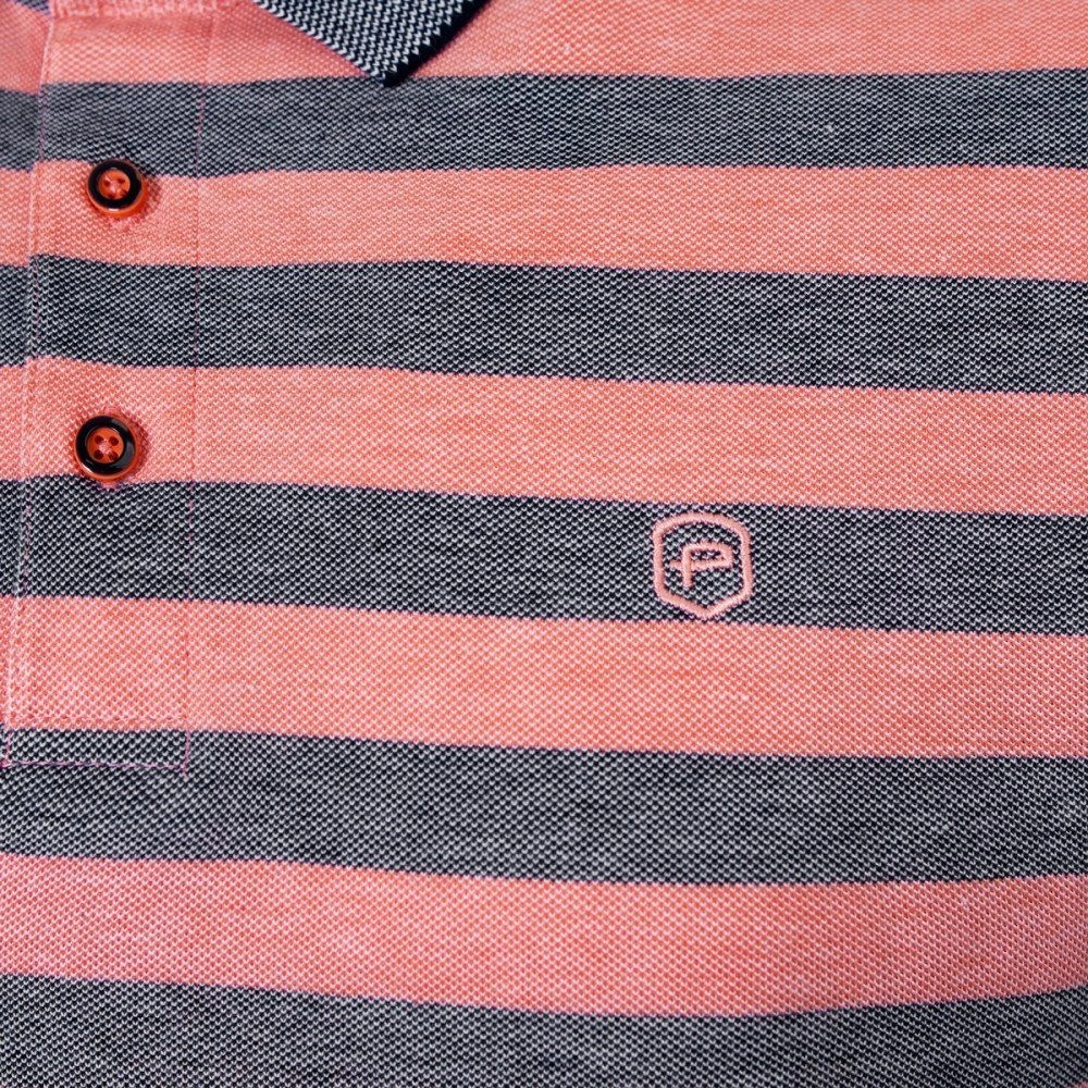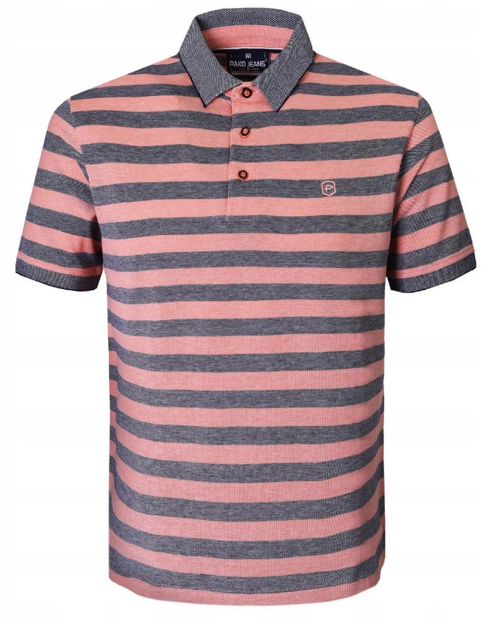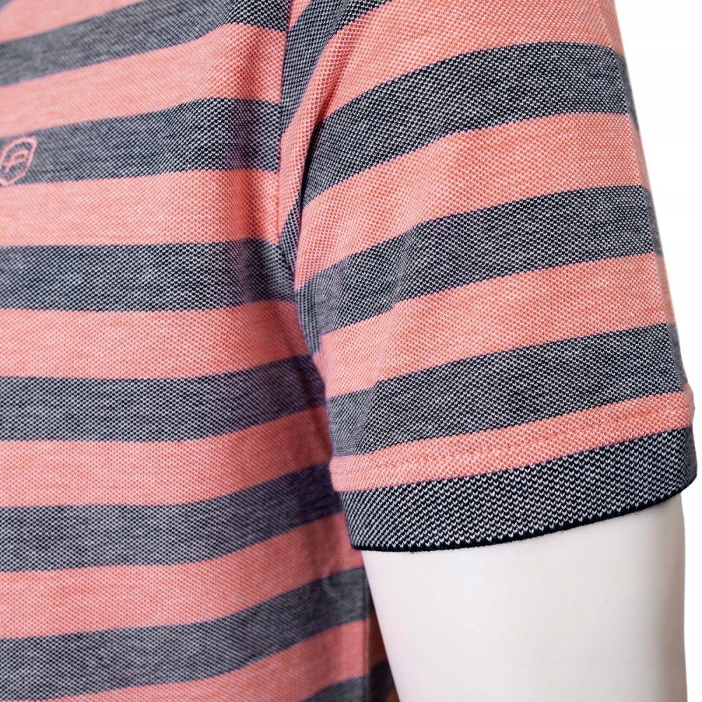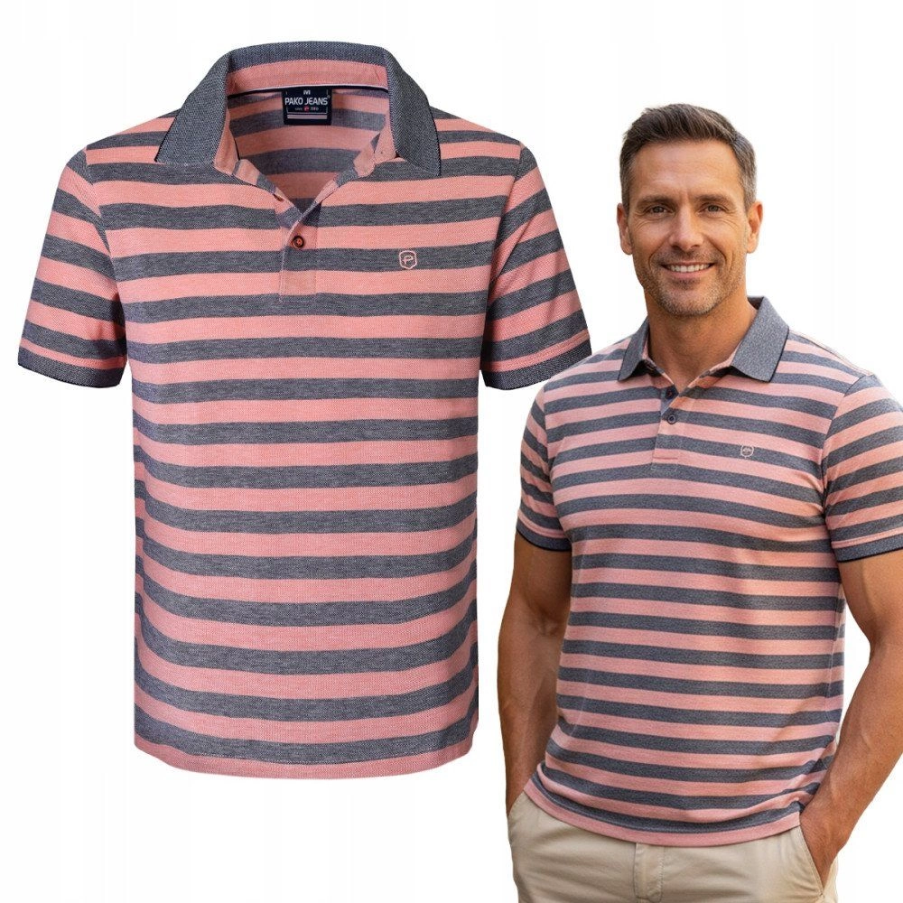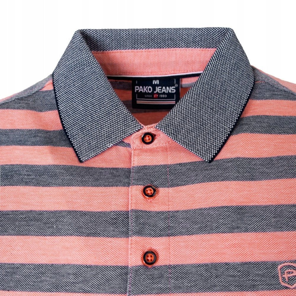 Bawełniana, Męska Koszulka Polo - Pako Jeans - Łososiowe Pasy