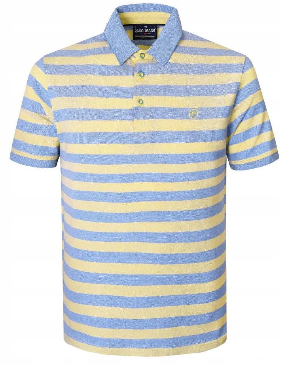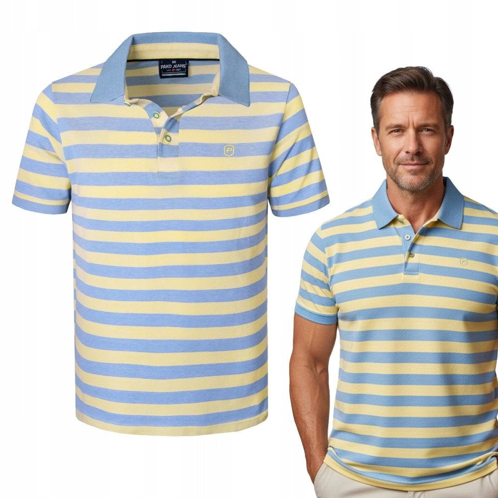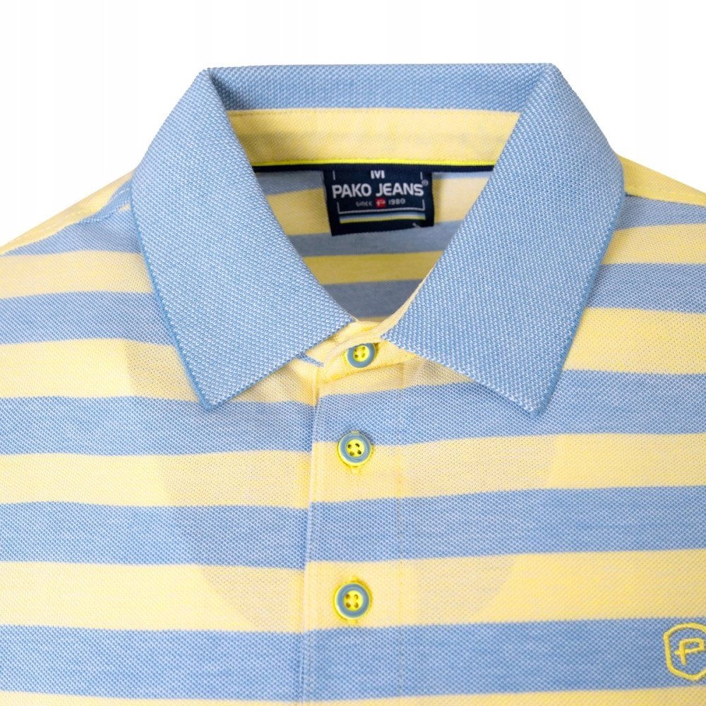Bawełniana, Męska Koszulka Polo - Pako Jeans - Żółte Pasy