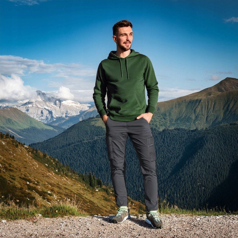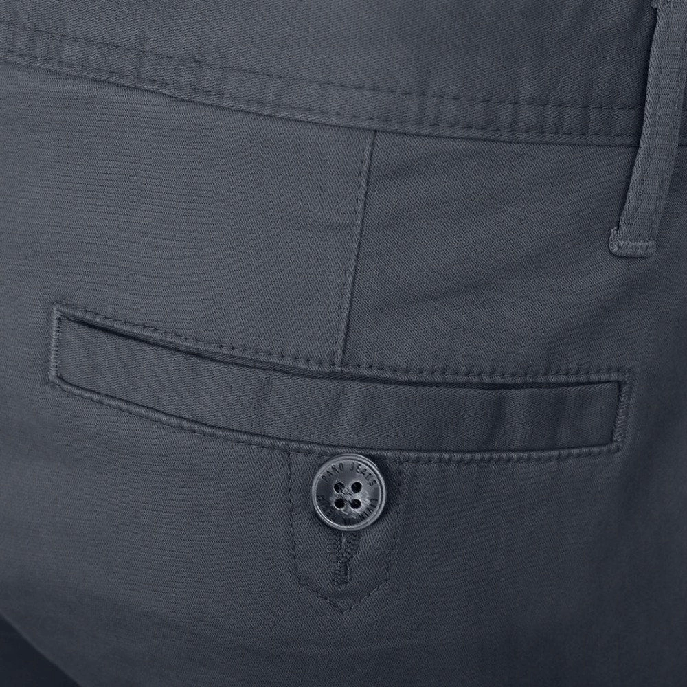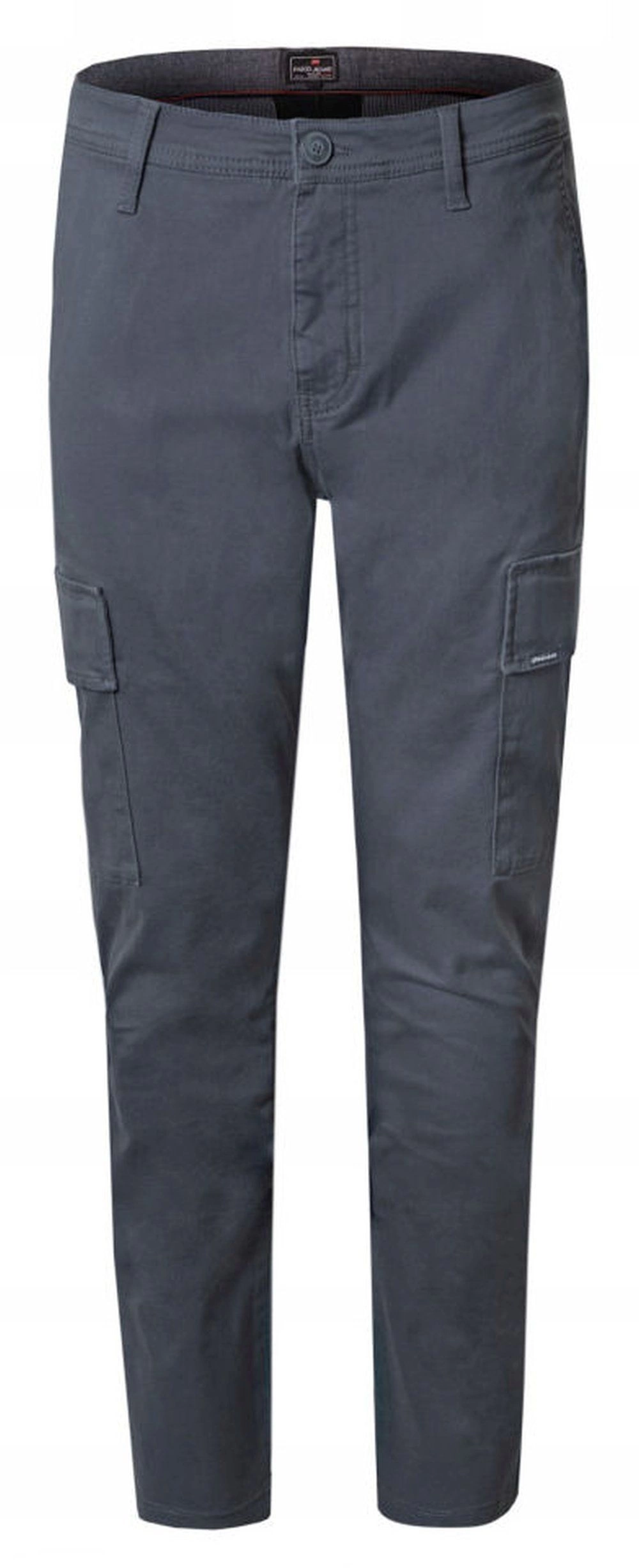 Bardzo praktyczne i wygodne spodnie marki Pako Jeans. Krój typu cargo czyli z dodatkowymi kieszeniami z boku. Kiedyś zarezerwowane jako ubiór roboczy - obecnie częsty i pożądany element męskiej, niezobowiązującej mody. Wykonane z bawełny (dla wygody i komfortu) z dodatkiem elastanu (dla elastyczności tkaniny). Model z delikatnie zwężanymi nogawkami.