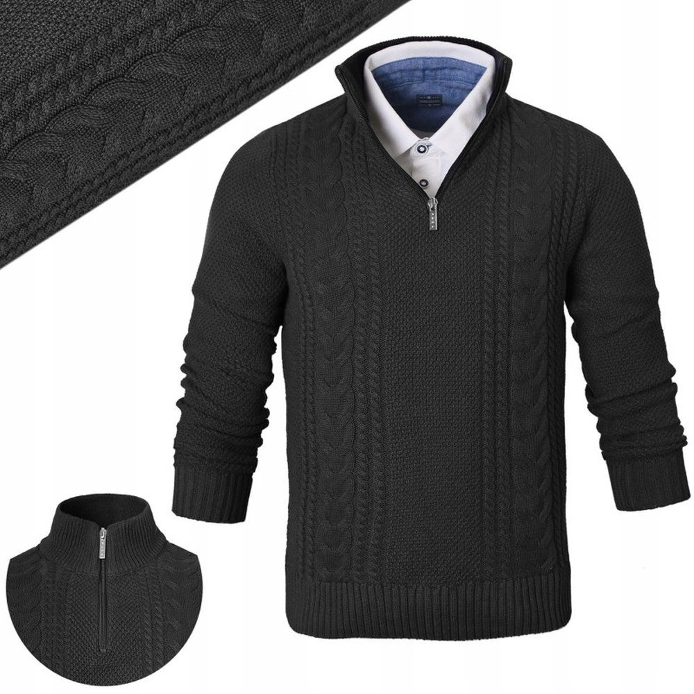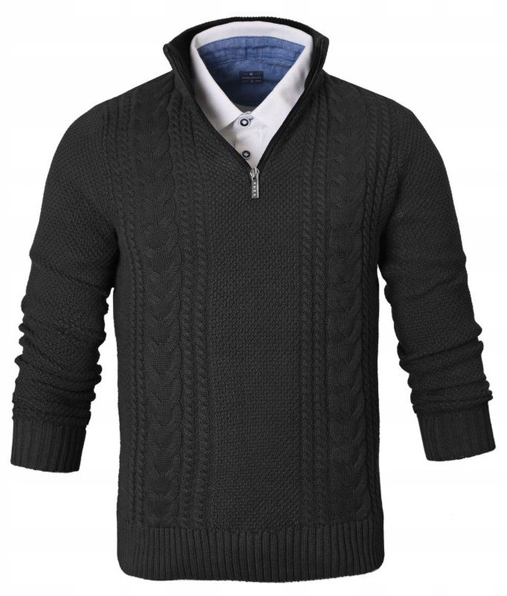 Klasyczny i elegancki męski sweter z wysokim kołnierzem na zamek polskiej marki Pako Jeans. Wykonany z doskonałej bawełnianej tkaniny. Produkt doskonale uzupełni wiosenną lub jesienno-zimową niezobowiązującą stylizację (tzw. weekendową).