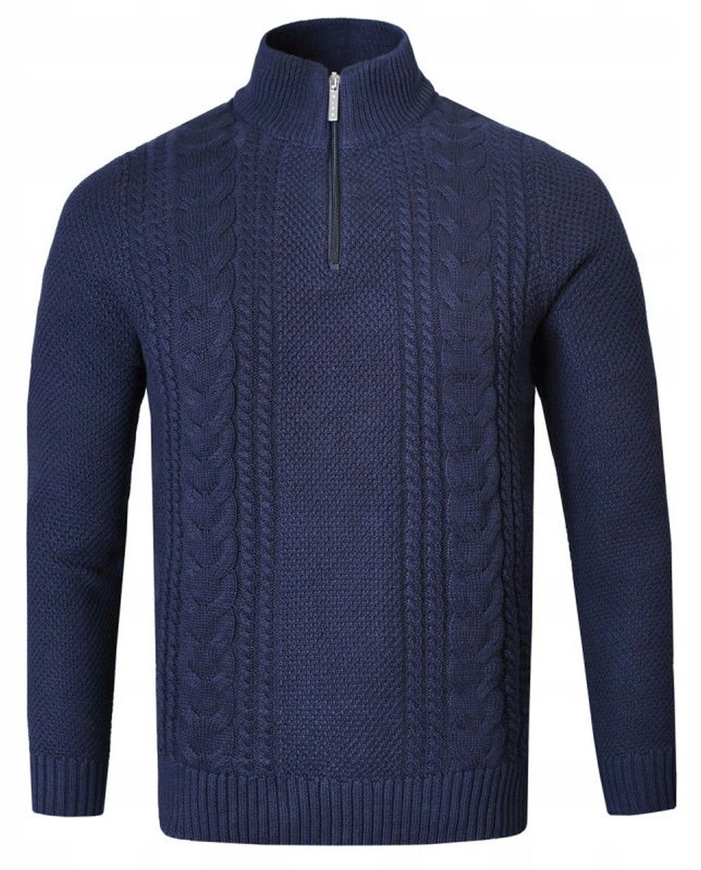 Bawełniany Sweter na Zamek, Wysoki Kołnierz - Pako Jeans - Granatowy