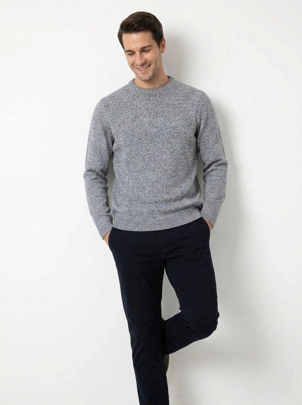 Bawełniany Sweter z Okrągłym Dekoltem - Adriano Guinari - Popielaty Melanż