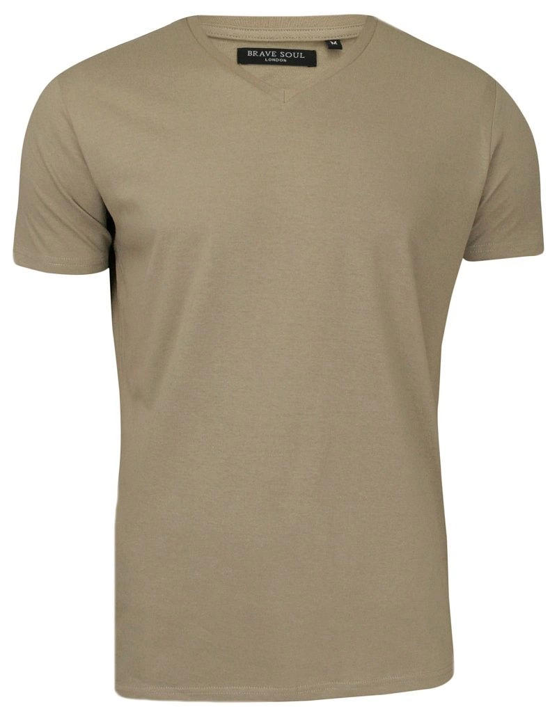 Beżowa Męska Koszulka (T-shirt) - Brave Soul - V-Neck