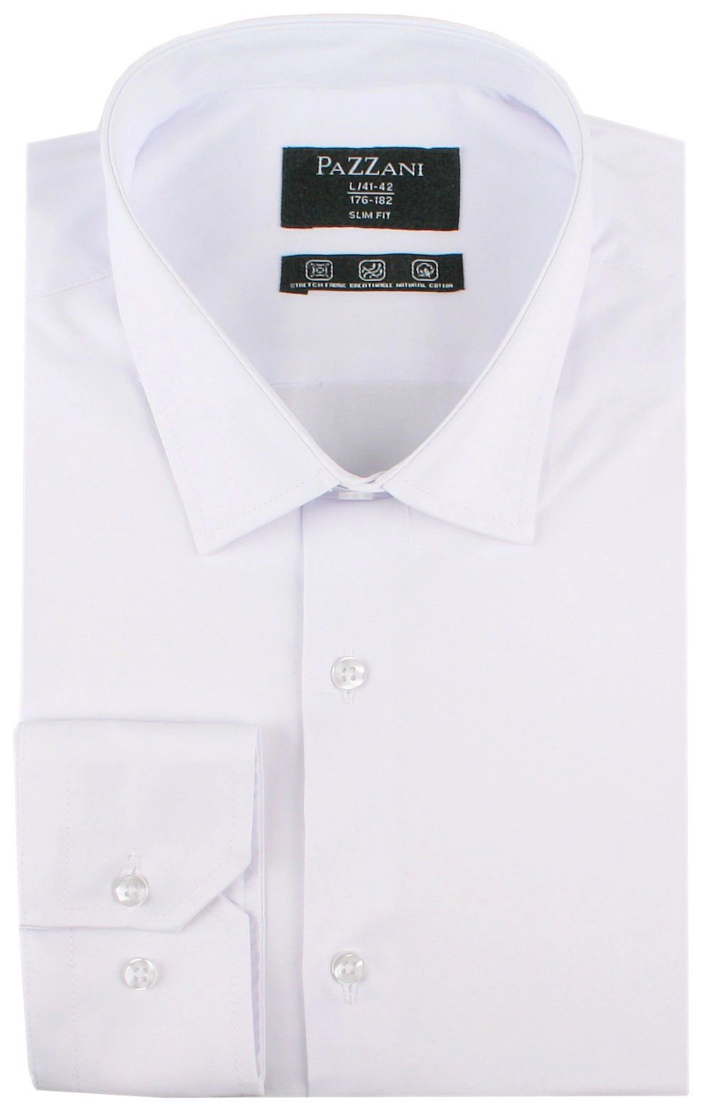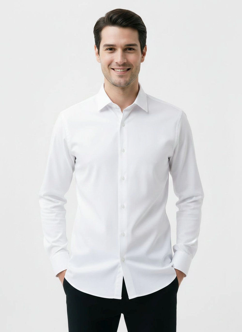 Elegancka koszula o wyszczuplonym (taliowanym) kroju z elastycznej tkaniny opartej w 97% na naturalnej bawełnie. Uszyta z dbałością o detale takie jak np. kryty guzik pod kołnierzem (tzw. button-down). Wysokogatunkowy skład materiału gwarantuje wygodę i uczucie oddychania tkaniny, zaś dodatek elastanu stanowi o jej elastyczności oraz łatwości prasowania.