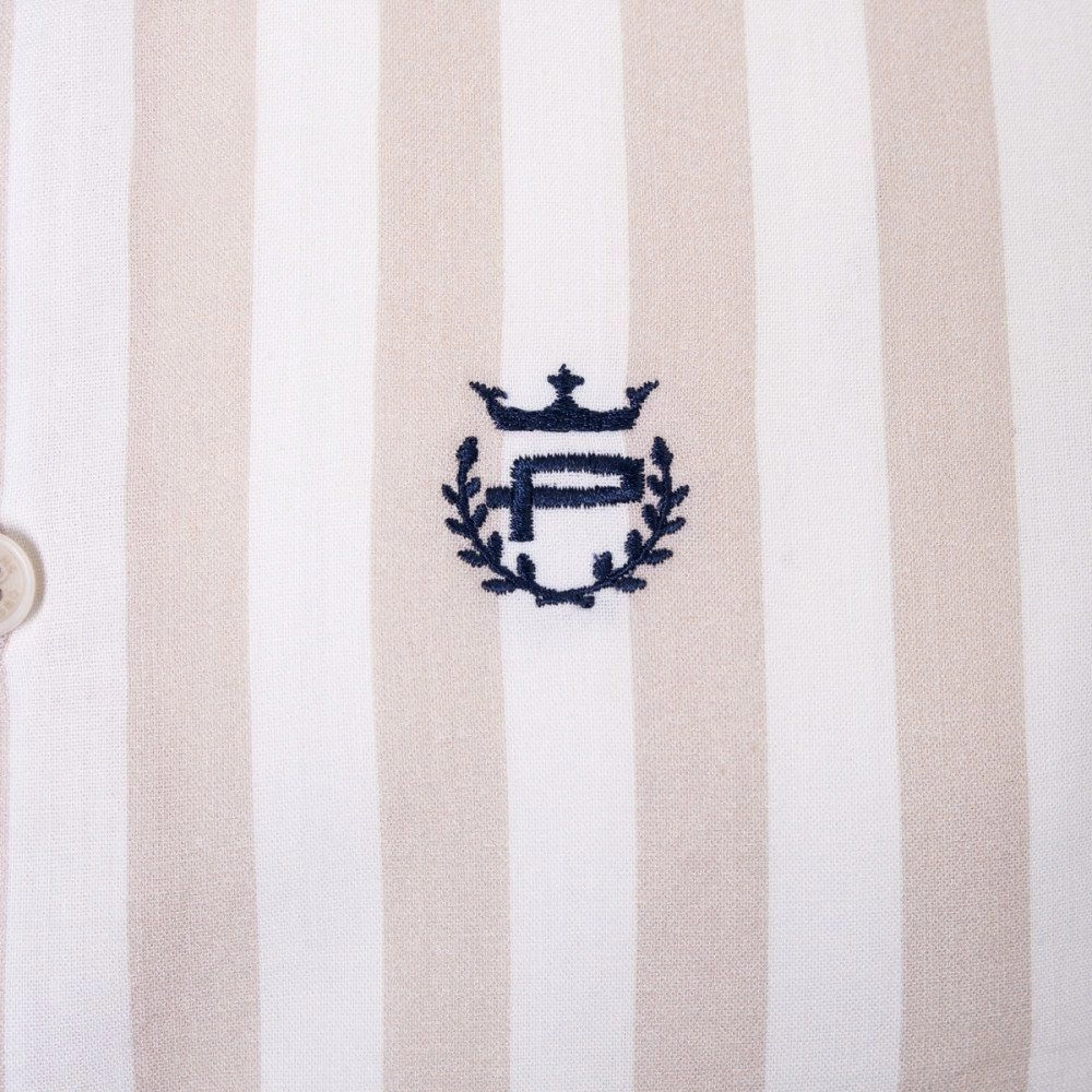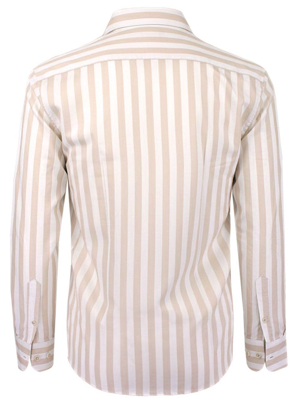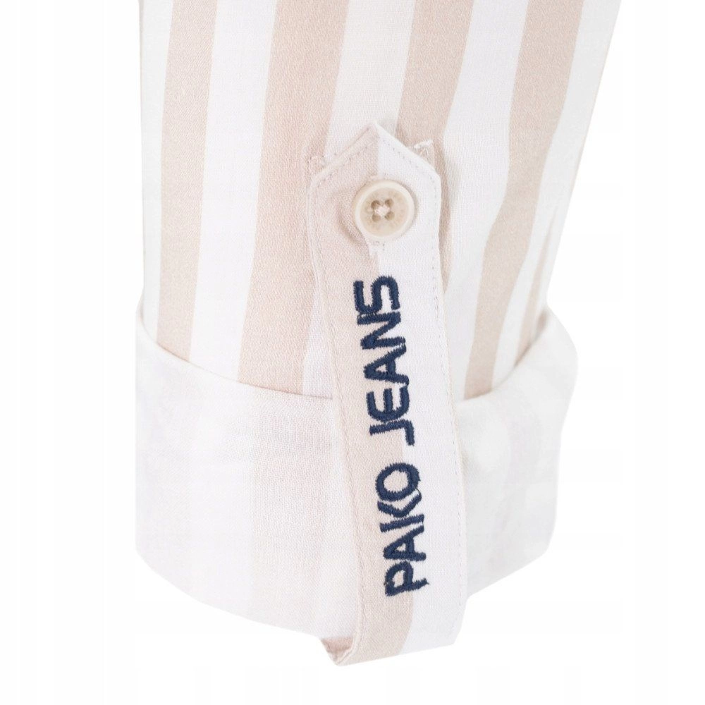 Biała, Lekko Taliowana Koszula Męska - Pako Jeans - Beżowy Prążek