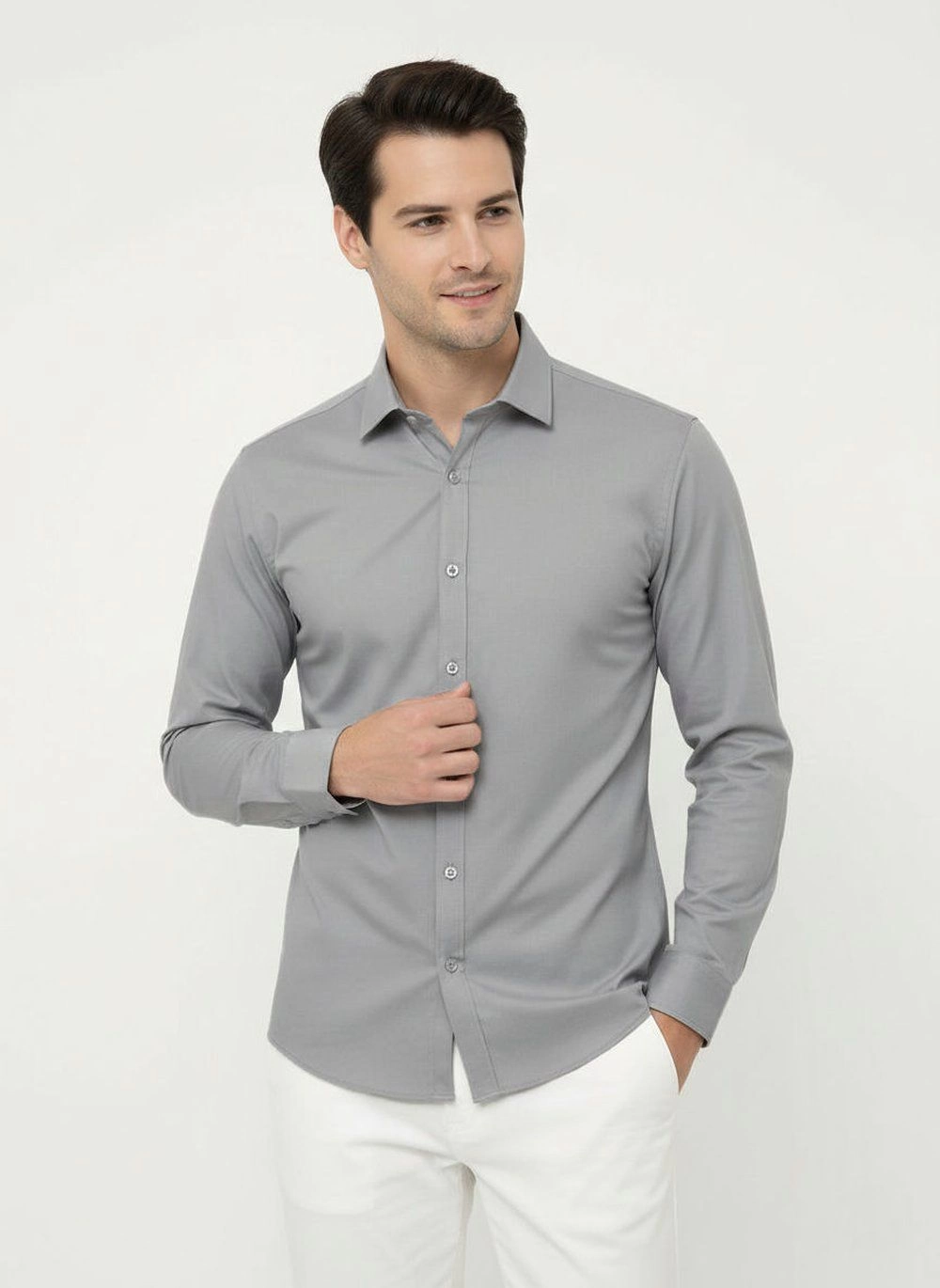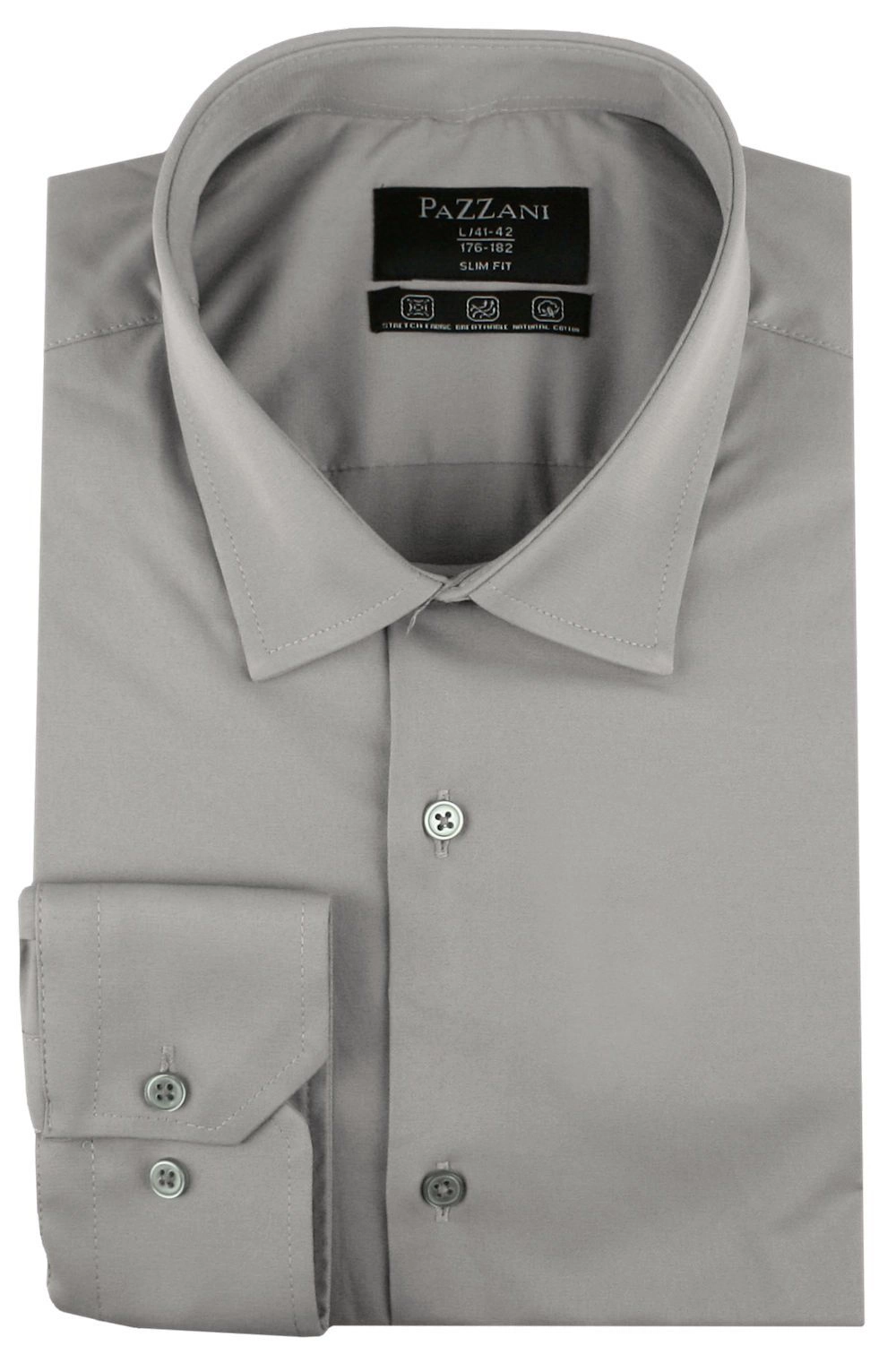 Elegancka koszula o wyszczuplonym (taliowanym) kroju z elastycznej tkaniny opartej w 97% na naturalnej bawełnie. Uszyta z dbałością o detale takie jak np. kryty guzik pod kołnierzem (tzw. button-down). Wysokogatunkowy skład materiału gwarantuje wygodę i uczucie oddychania tkaniny, zaś dodatek elastanu stanowi o jej elastyczności oraz łatwości prasowania.