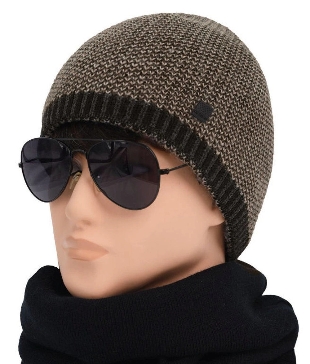 Ciepła, Dwuwarstwowa Czapka Beanie - Pako Jeans - Beżowy Melanż