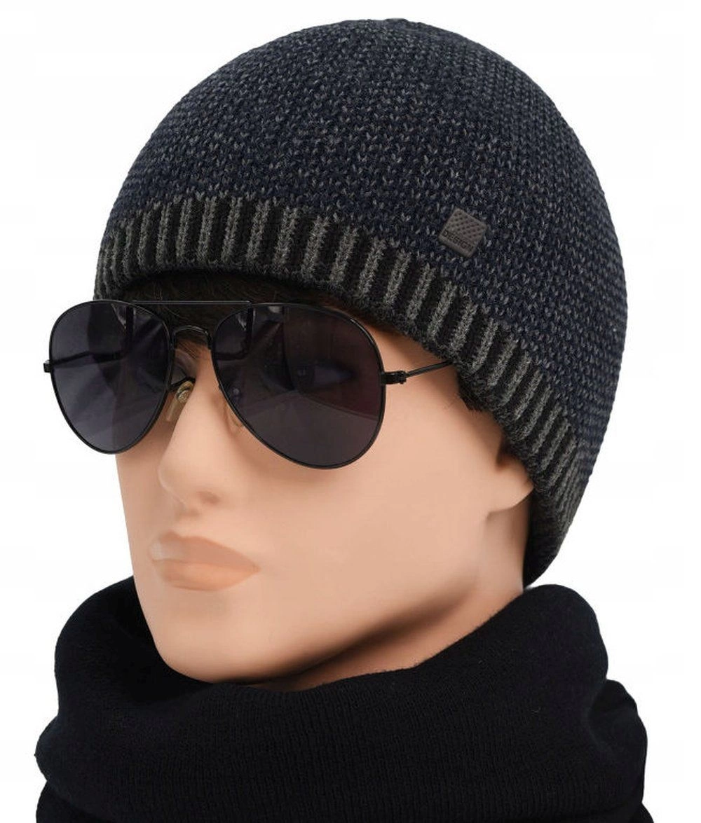 Ciepła, Dwuwarstwowa Czapka Beanie - Pako Jeans - Granatowy Melanż