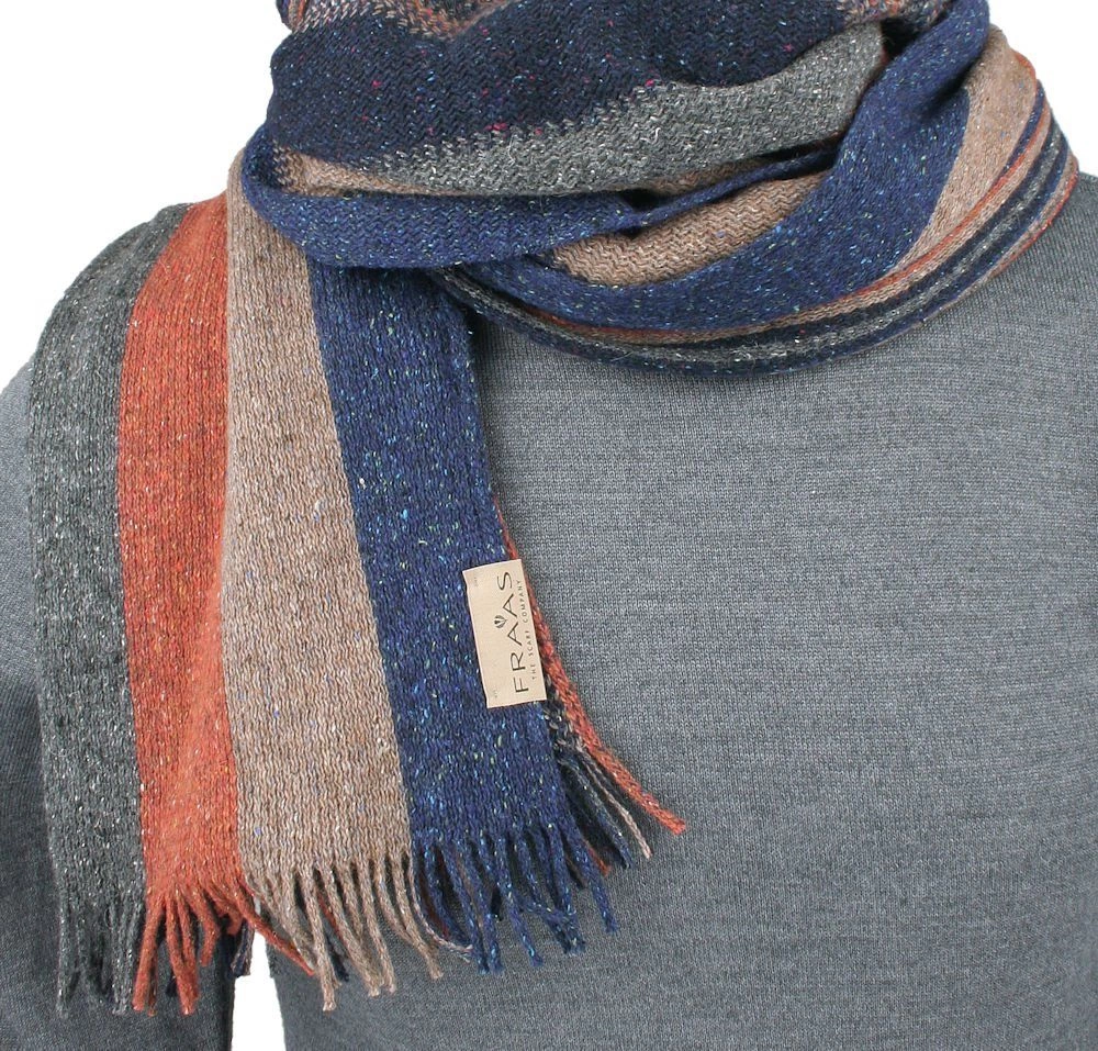 Ciepły i Praktyczny Szalik z Wełną i Jedwabiem - V. Fraas - Jesienna Kolorystyka, Pasy