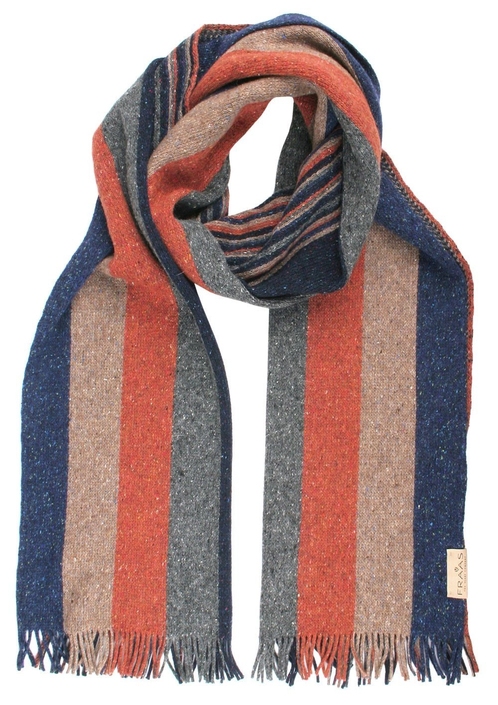Zimowy szalik znanej niemieckiej firmy V.Fraas istniejącej na rynku już prawie 130 lat. Szaliki nie tylko chronią szyję przed zimnem, są też doskonałym urozmaiceniem męskiej garderoby. Zachowane w stonowanej kolorystyce. Pasują zarówno do eleganckiego, jak i typowo miejskiego, luźnego stroju. Wymiary szalika (w cm) – długość (z frędzlami): ok. 180 / szerokość: ok. 33 (+/- 5 cm). Materiał: 40% wełna, 26% poliamid, 16% jedwab, 16% wiskoza, 2% inne.