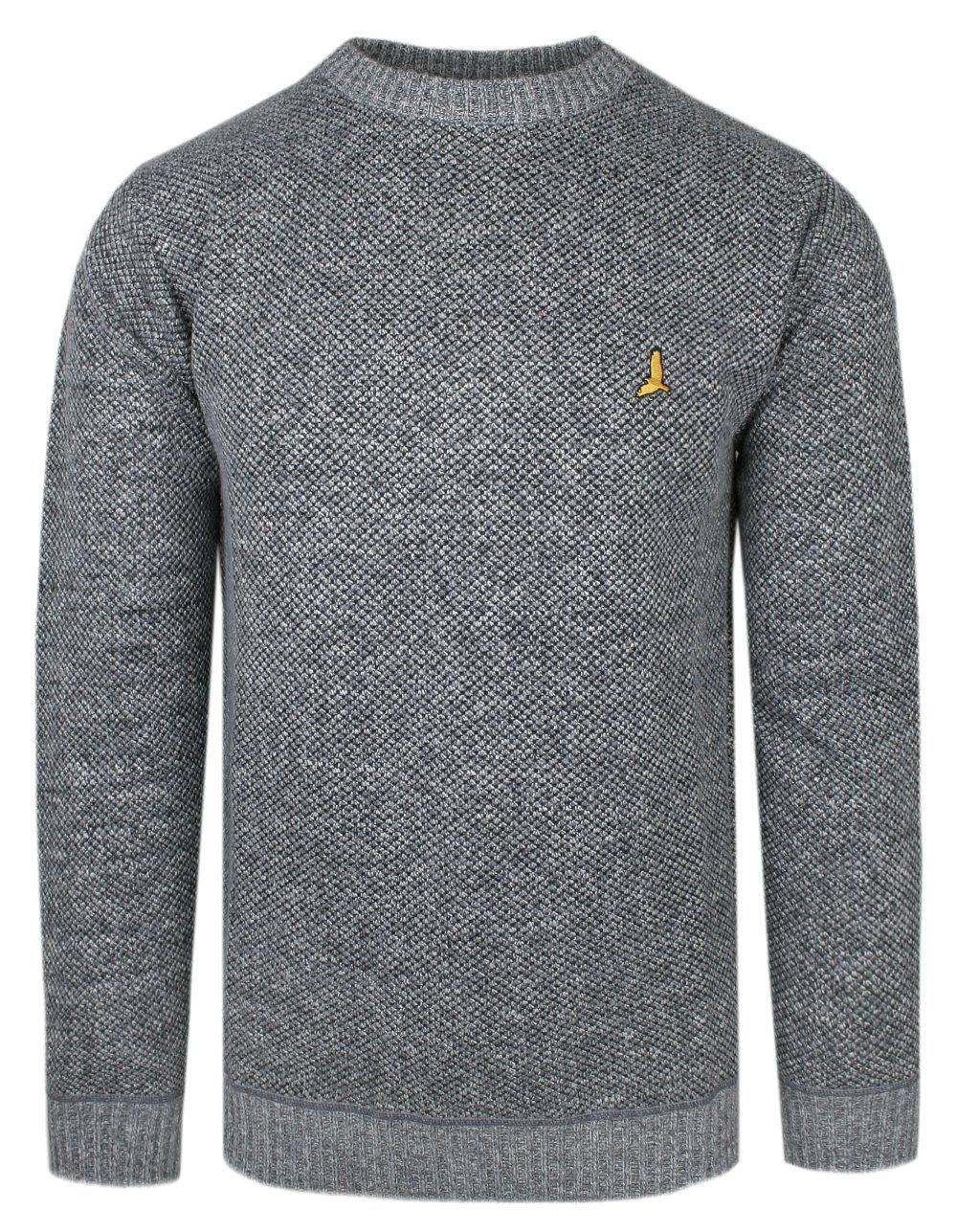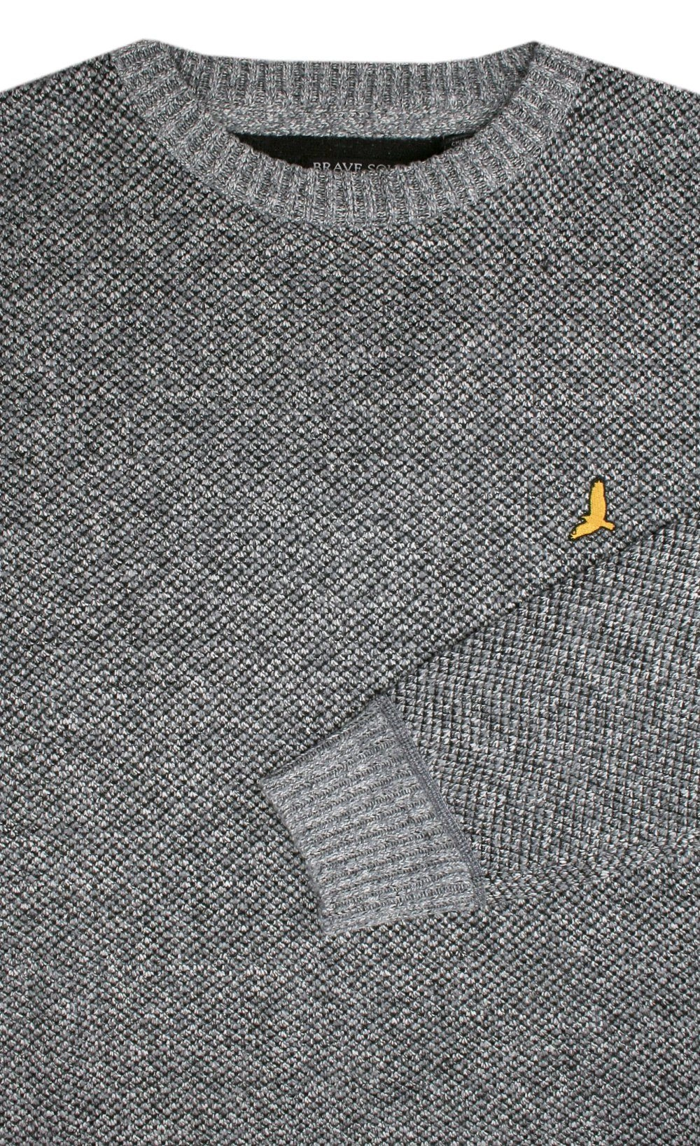 Ciepły i wygodny sweter o okrągłym dekolcie z melanżowej tkaniny. Na piersi logo brytyjskiej marki odzieżowej Brave Soul.
