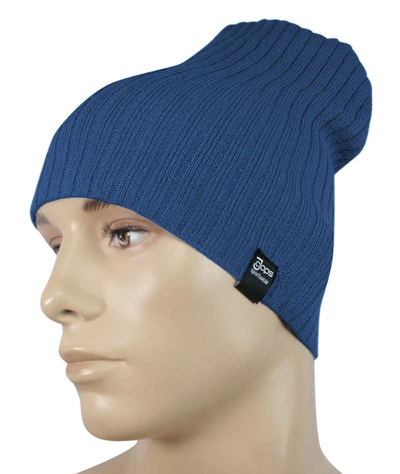 Czapka Ciemna Niebieska, Jesienno-Zimowa, Beanie, Krasnal, Rozciągliwa, w Prążki