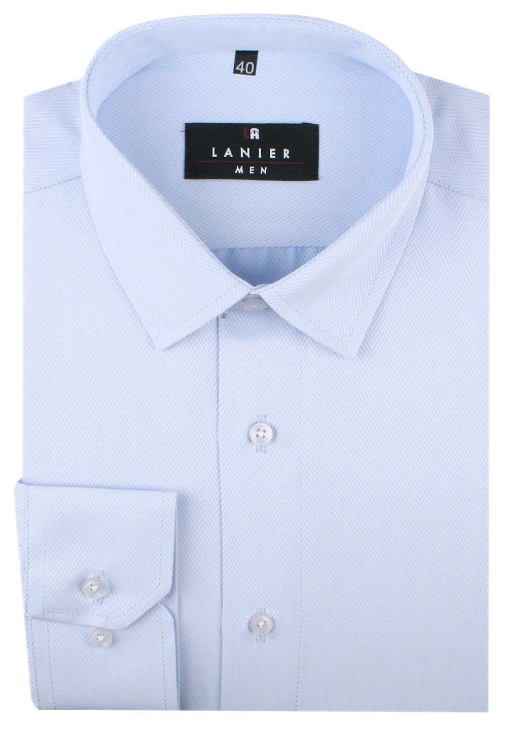 Delikatnie Wyszczuplana (Slim) Męska Koszula - Lanier - Błękit, Faktura w Jodełkę