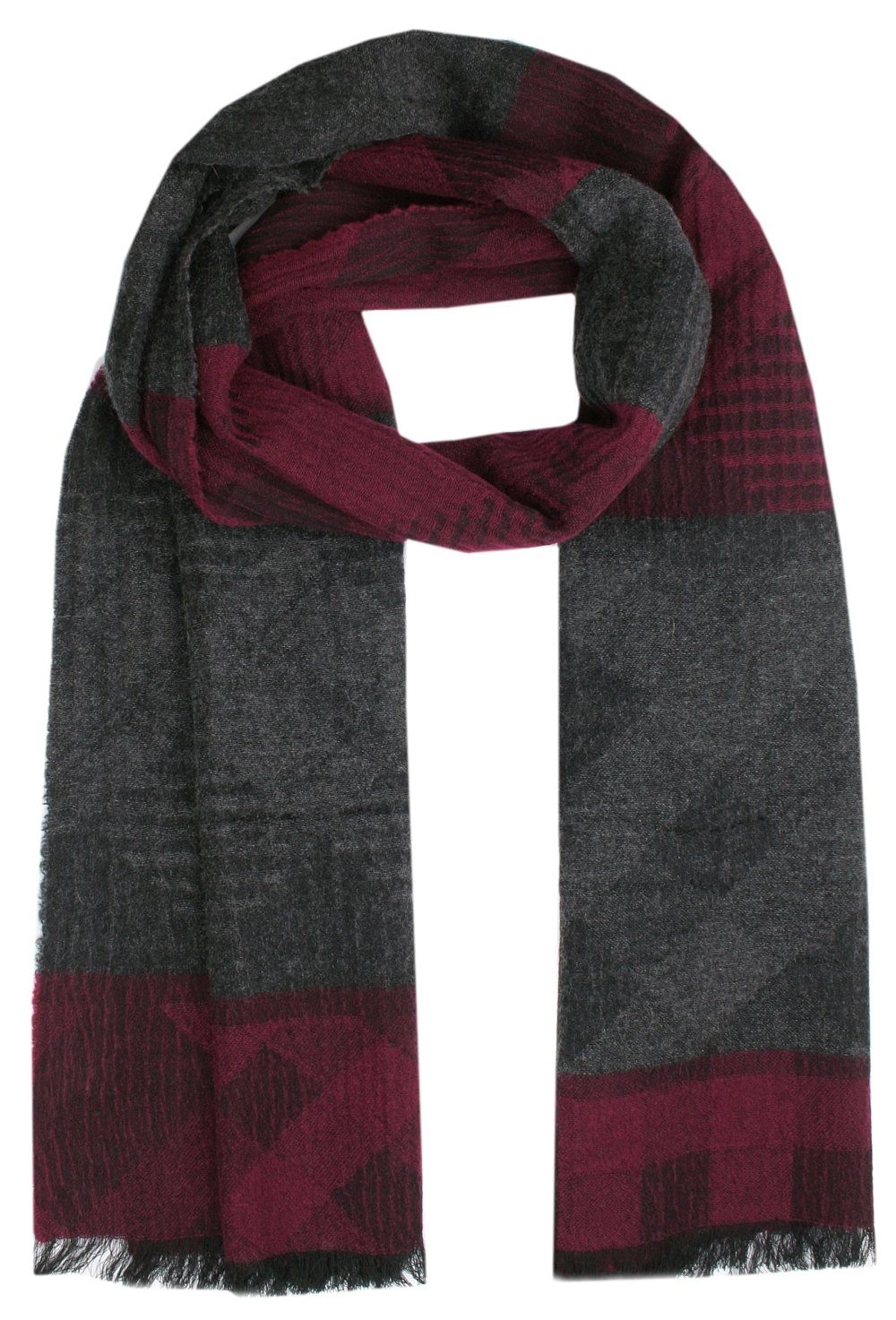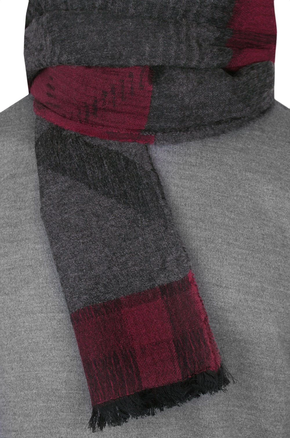 Delikatny Szal Męski z Wełny Kaszmirskiej - V. Fraas - Grafit z Bordo