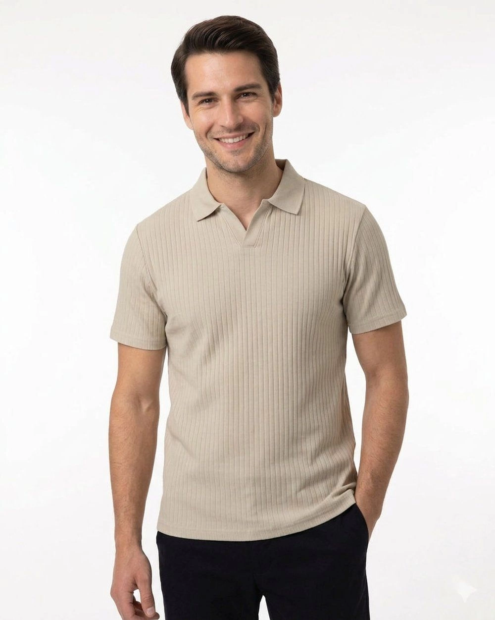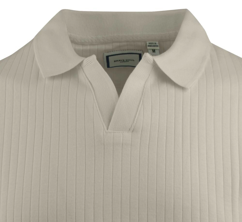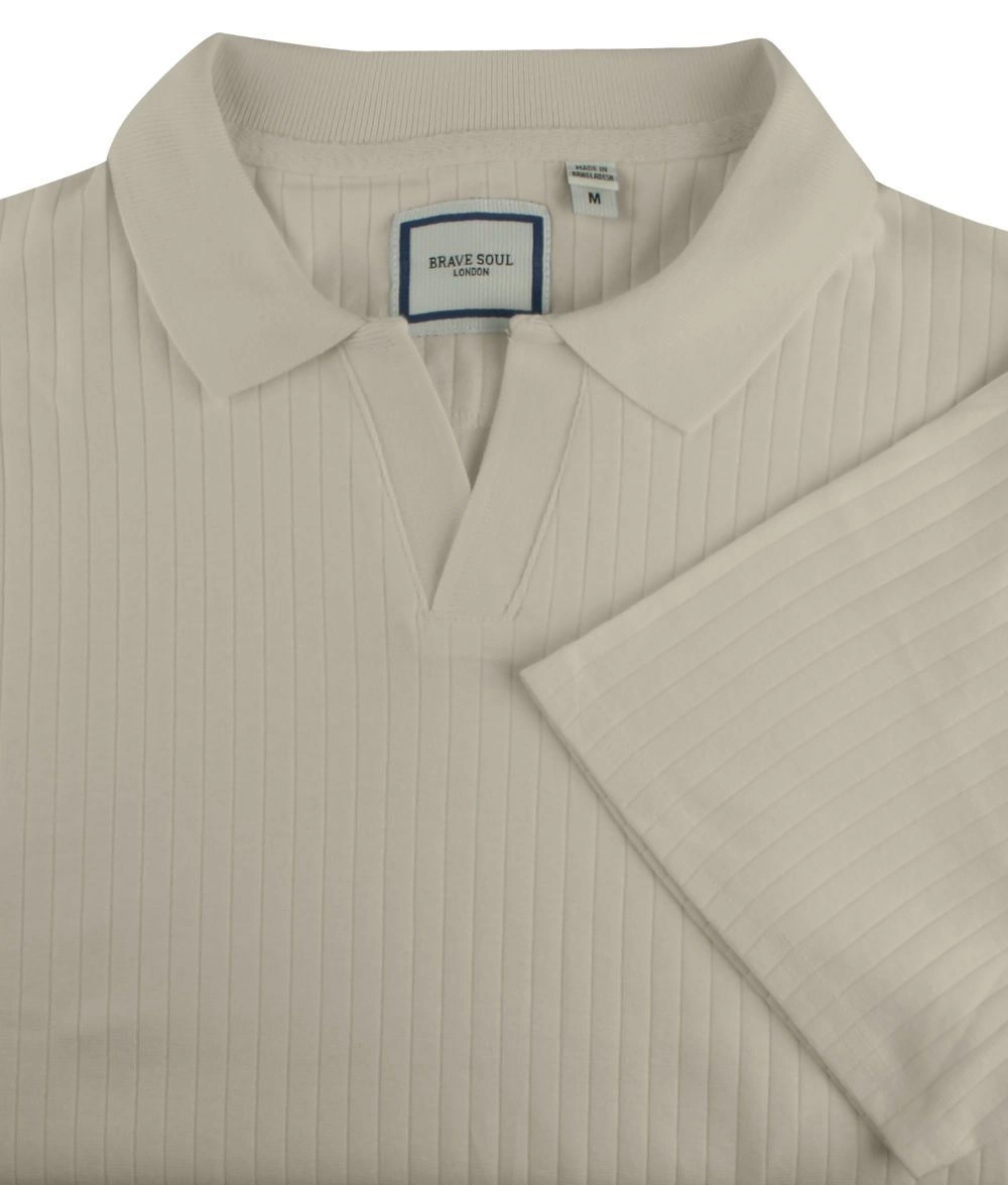 Dzianinowa Koszulka Polo - Dekolt Bez Guzików - Brave Soul - Beżowa