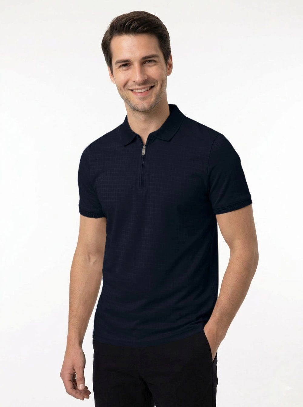 Dzianinowe Polo - Dekolt na Zamek - Brave Soul - Granat