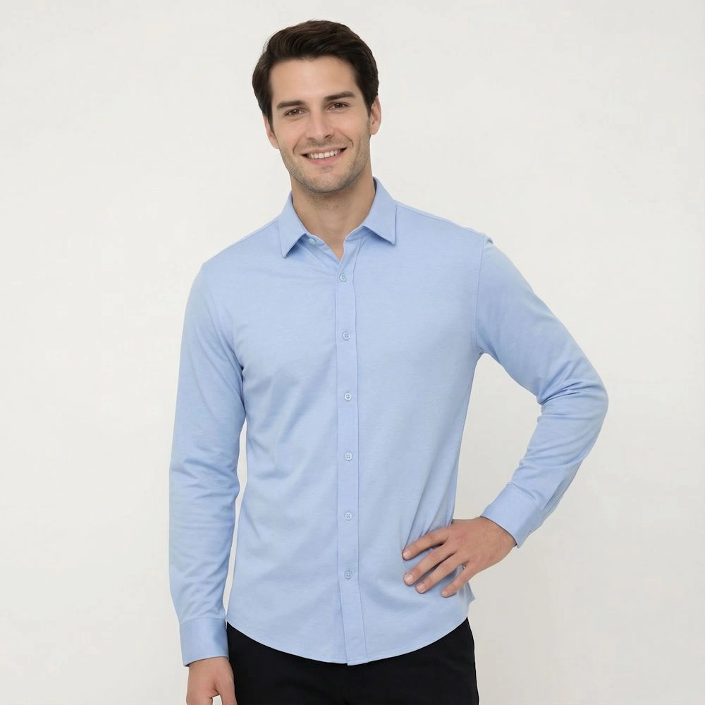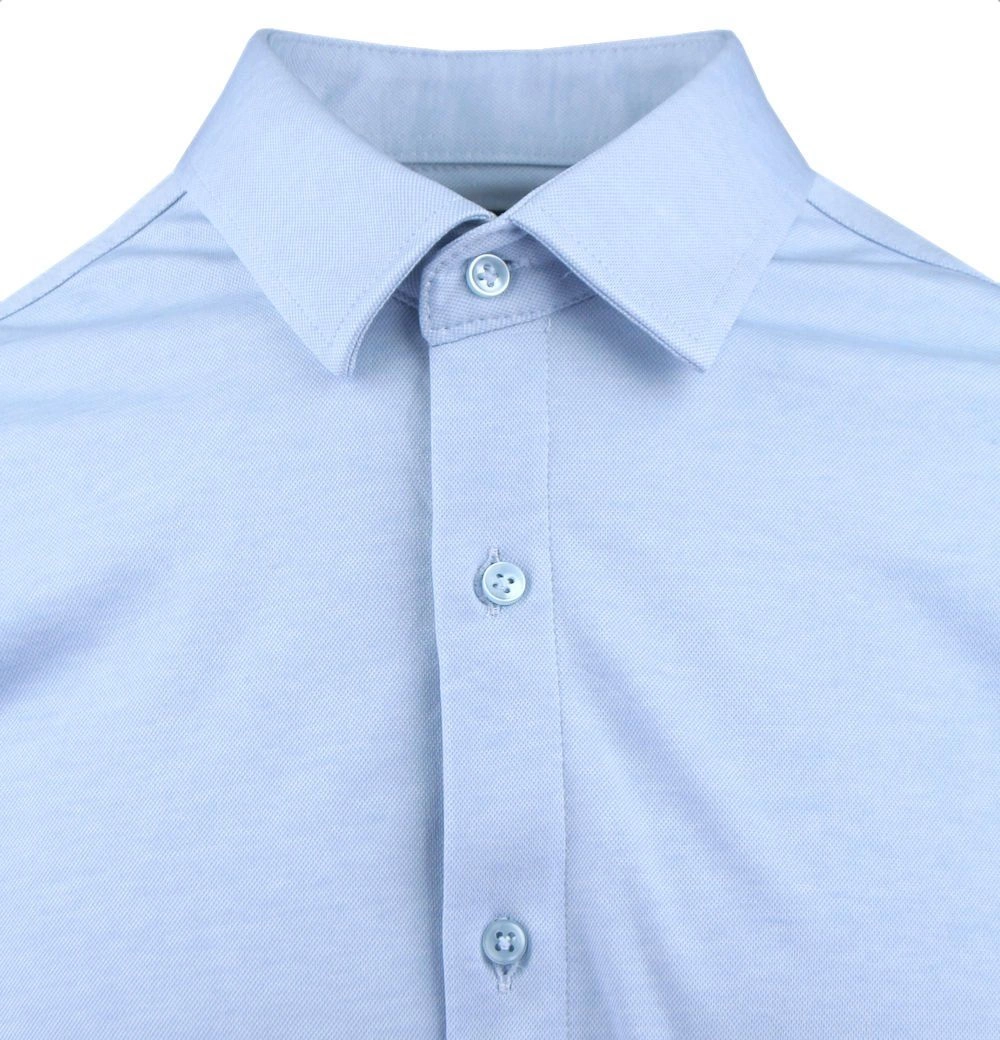 Elegancka koszula o prostym kroju z elastycznej tkaniny i dzianinowym splocie. Uszyta z dbałością o detale takie jak np. kryty guzik pod kołnierzem (tzw. button-down). Mimo braku fiszbin (usztywnienia kołnierzyka) koszula chętnie wybierana jest do bardziej klasycznych stylizacji czyli z garniturem lub marynarką. Dominacja bawełny w składzie materiału gwarantuje wygodę i uczucie oddychania materiału, zaś dodatek elastanu stanowi o jej elastyczności oraz łatwości prasowania.