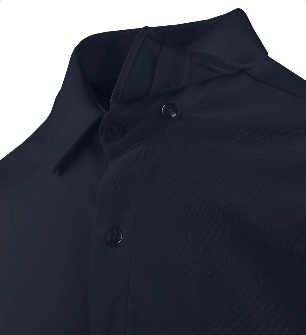 Elegancka koszula o prostym kroju z elastycznej tkaniny i dzianinowym splocie. Uszyta z dbałością o detale takie jak np. kryty guzik pod kołnierzem (tzw. button-down). Mimo braku fiszbin (usztywnienia kołnierzyka) koszula chętnie wybierana jest do bardziej klasycznych stylizacji czyli z garniturem lub marynarką. Dominacja bawełny w składzie materiału gwarantuje wygodę i uczucie oddychania materiału, zaś dodatek elastanu stanowi o jej elastyczności oraz łatwości prasowania.