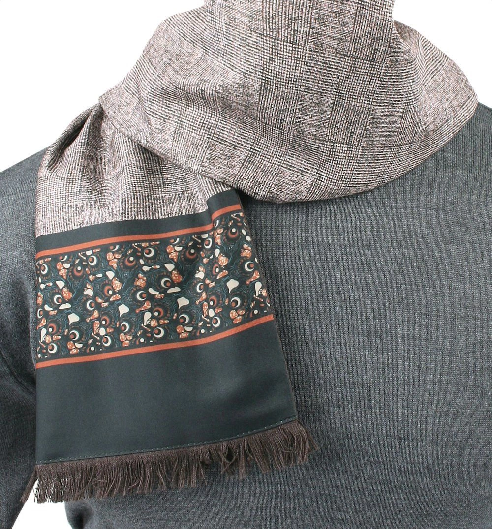 Jesienno-zimowy szalik męski, dynamicznie rozwijającej się firmy HIS STORY to marka własna sklepu JegoSzafa. Prezentowany szalik to połączenie dwóch naturalnych materiałów: trwałej wełny oraz delikatnego jedwabiu. Efektem jest wyjątkowo miękki i lekki produkt, który doskonale sprawdzi się w chłodne i zimne dni. Wymiary szalika (w cm) – długość: ok. 150 / szerokość: ok. 28,5. Materiał: 50% wełna, 50% jedwab UWAGA: Szalik zapakowany jest w pudełko z elegancką bibułką. Jest to gotowy pomysł na prezent.
