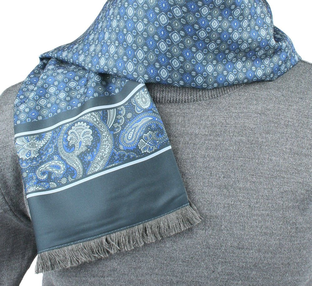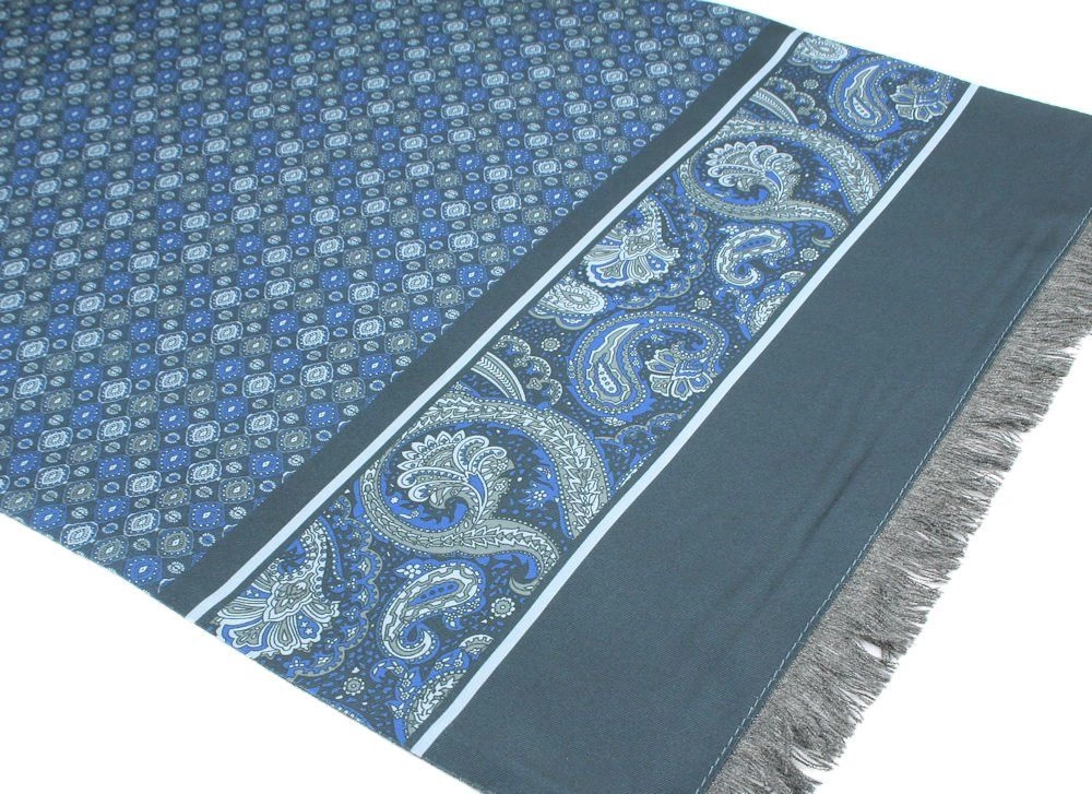 Elegancki Szalik Wełniano-Jedwabny - His Story - Niebieski i Popiel, Grochy