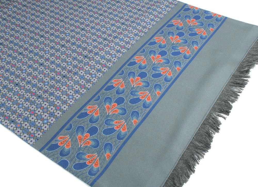 Jesienno-zimowy szalik męski, dynamicznie rozwijającej się firmy HIS STORY to marka własna sklepu JegoSzafa. Prezentowany szalik to połączenie dwóch naturalnych materiałów: trwałej wełny oraz delikatnego jedwabiu. Efektem jest wyjątkowo miękki i lekki produkt, który doskonale sprawdzi się w chłodne i zimne dni. Wymiary szalika (w cm) – długość: ok. 150 / szerokość: ok. 28,5. Materiał: 50% wełna, 50% jedwab UWAGA: Szalik zapakowany jest w pudełko z elegancką bibułką. Jest to gotowy pomysł na prezent.
