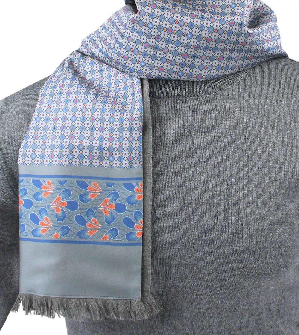 Elegancki Szalik Wełniano-Jedwabny - His Story - Wielokolorowy, Drobny Wzór
