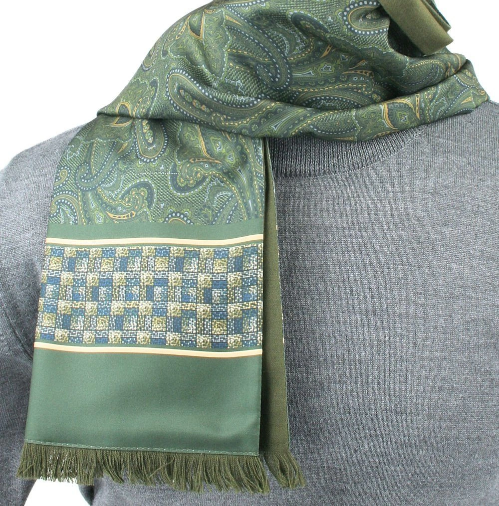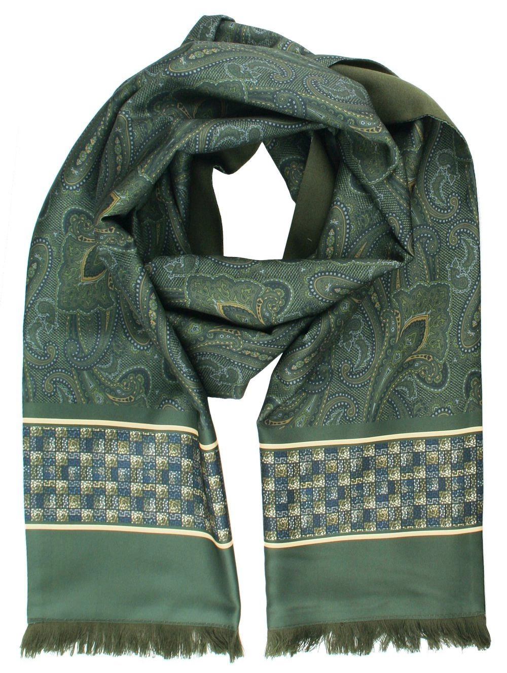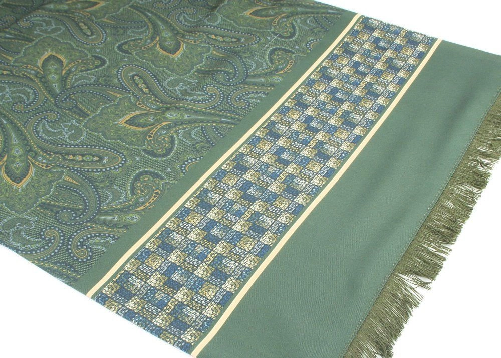 Elegancki Szalik Wełniano-Jedwabny - His Story - Zielony, Orientalny Wzór