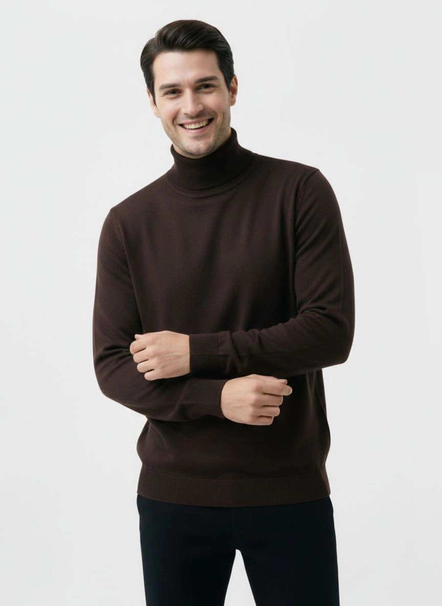 Golf Ciemny Brązowy, Elegancki Męski Ciemny Czekoladowy, 100% BAWEŁNA -Brave Soul