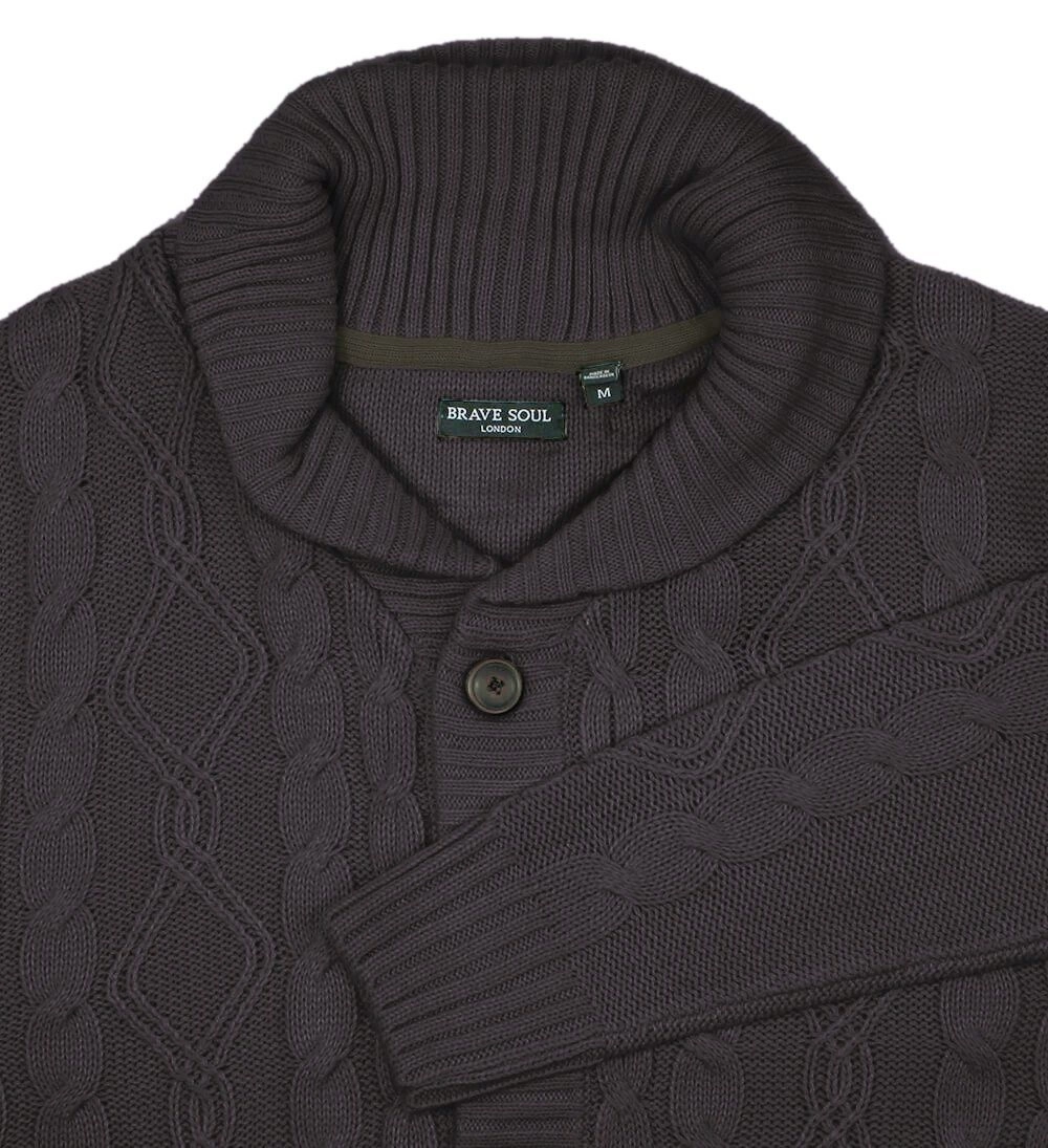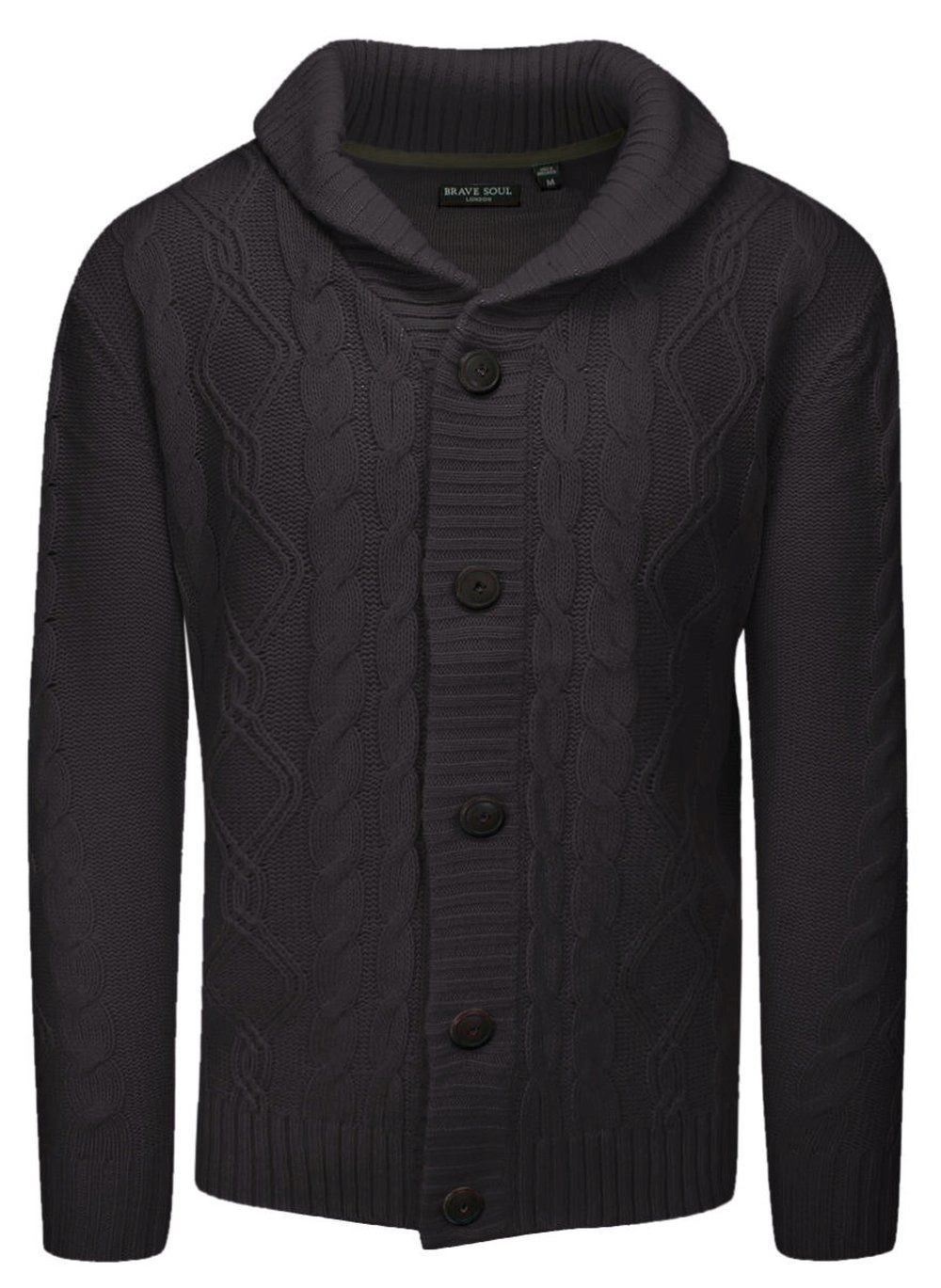 Modny dziergany sweter męski typu kardigan marki Brave Soul. Jest to konieczne uzupełnienie męskiej szafy ze względu na uniwersalny charakter. Dobrany z elegancką koszulą i krawatem jest przykładem niezobowiązującej elegancji (tzw. smart casual). Połączony z t-shirtem będzie z kolei wygodnym strojem weekendowym.
