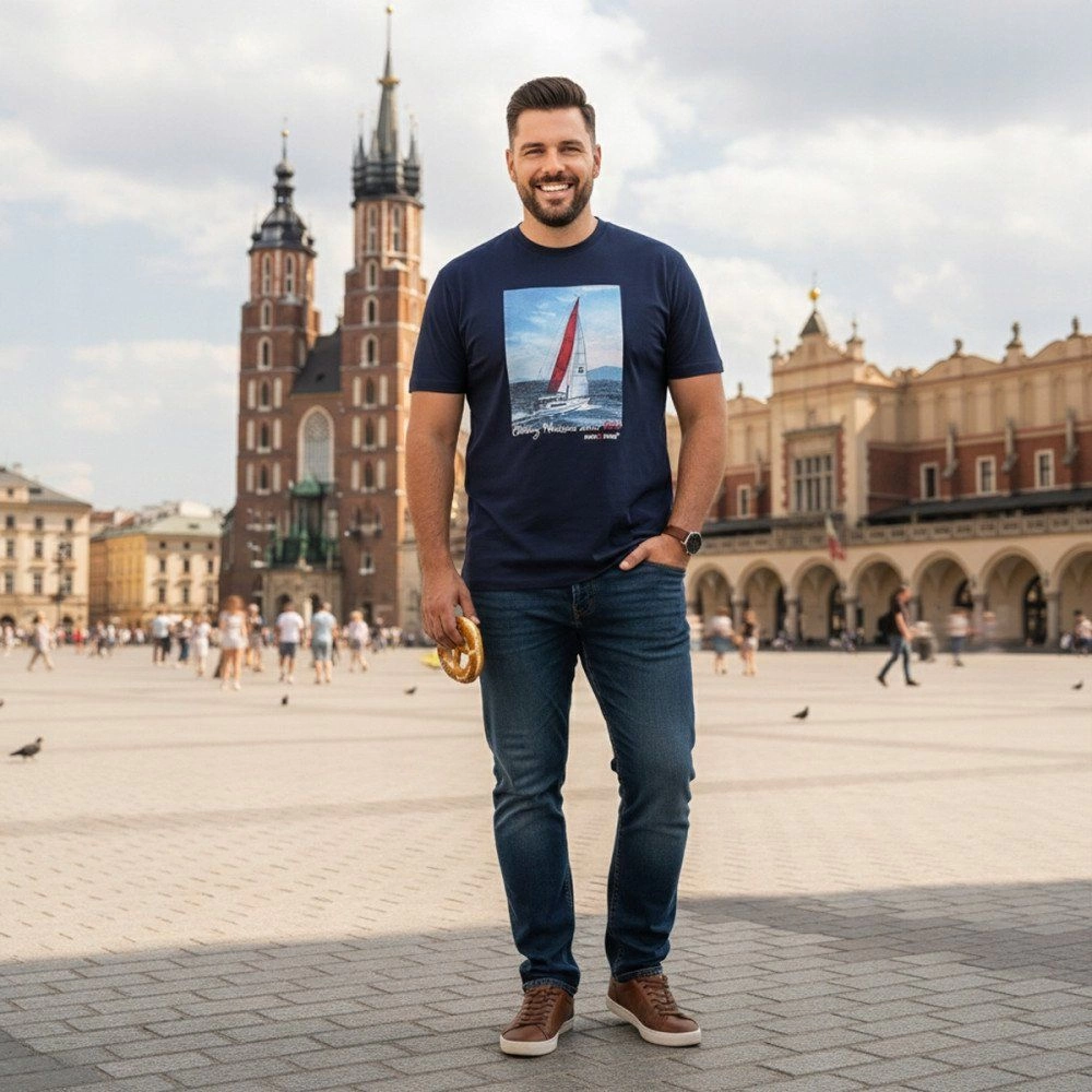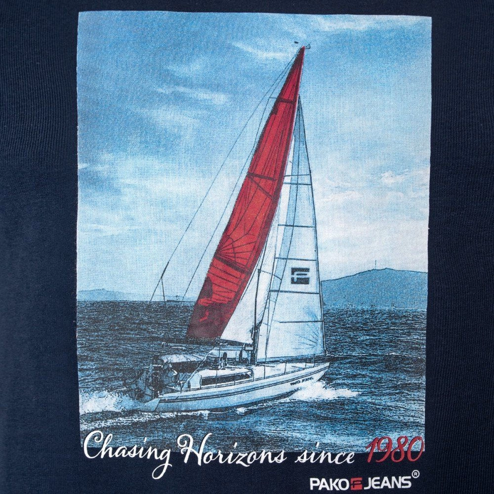 Granatowa Męska Koszulka (T-Shirt) - Pako Jeans - Żaglówka