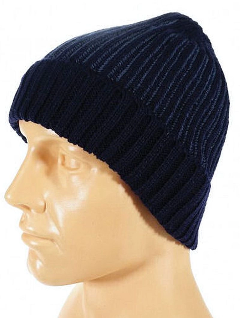Granatowa Odwijana Męska Jesienno-Zimowa Czapka, Ciepła, Uniwersalny Rozmiar