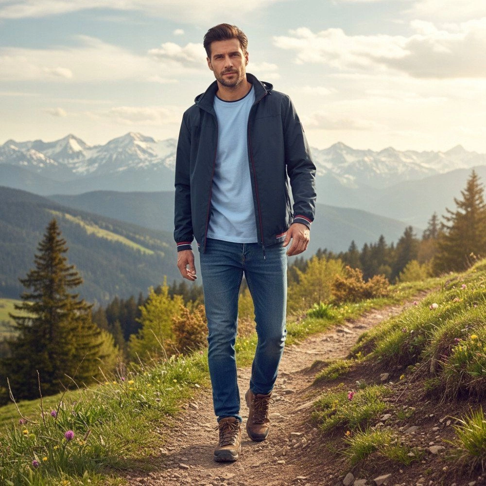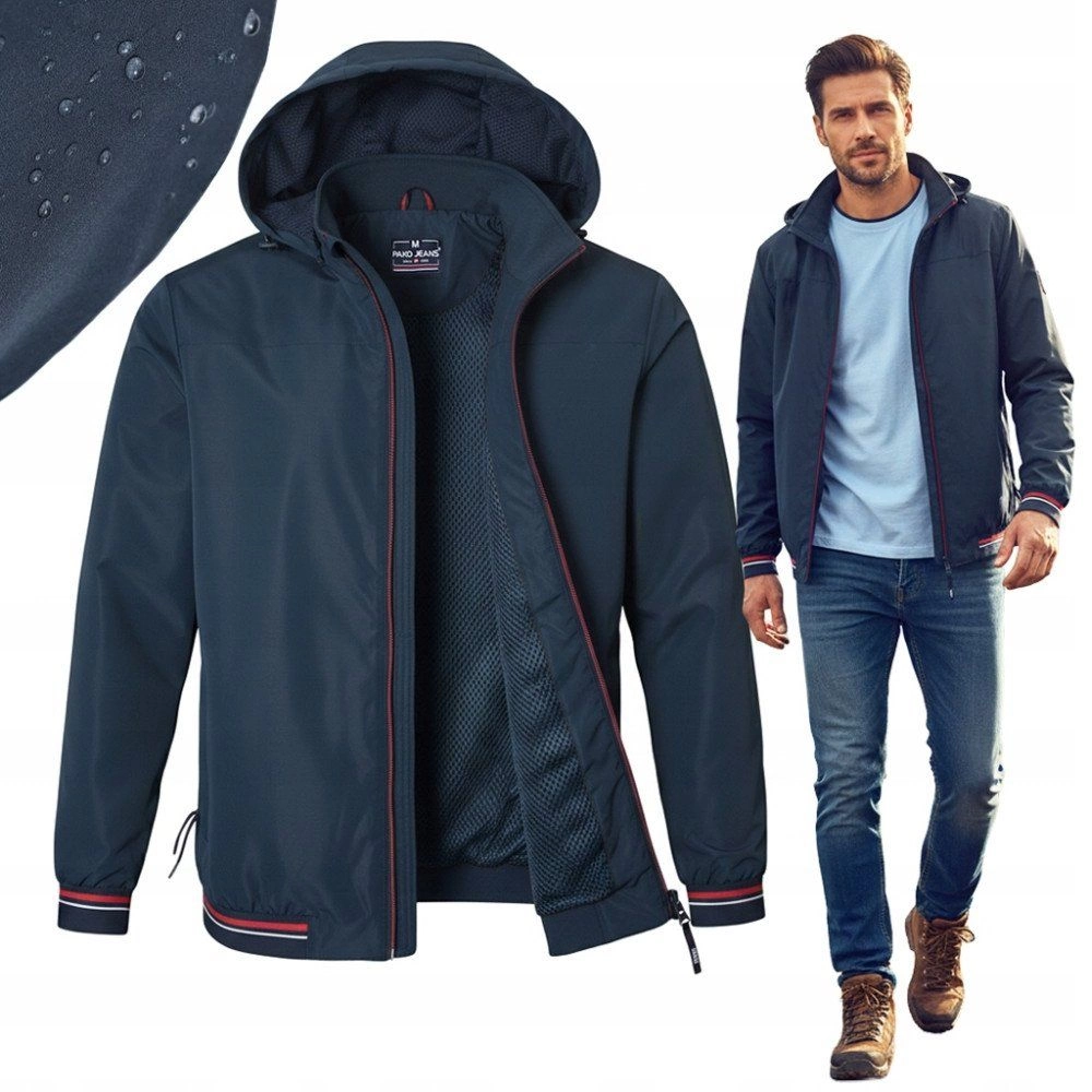 Granatowa Wiatrówka Męska z Odpinanym Kapturem - Pako Jeans