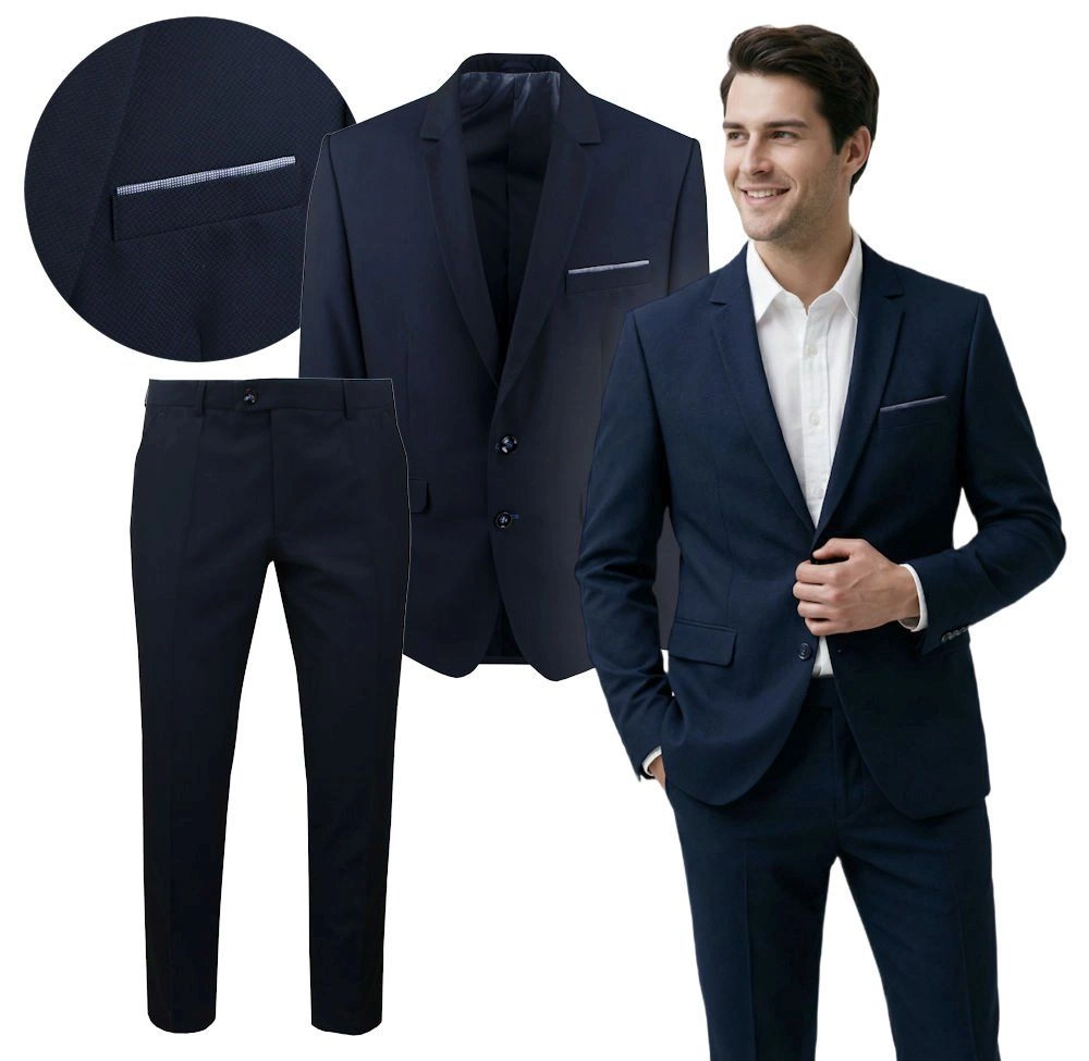 Granatowy Garnitur na Studniówkę lub Wesele - Taliowany - Casino