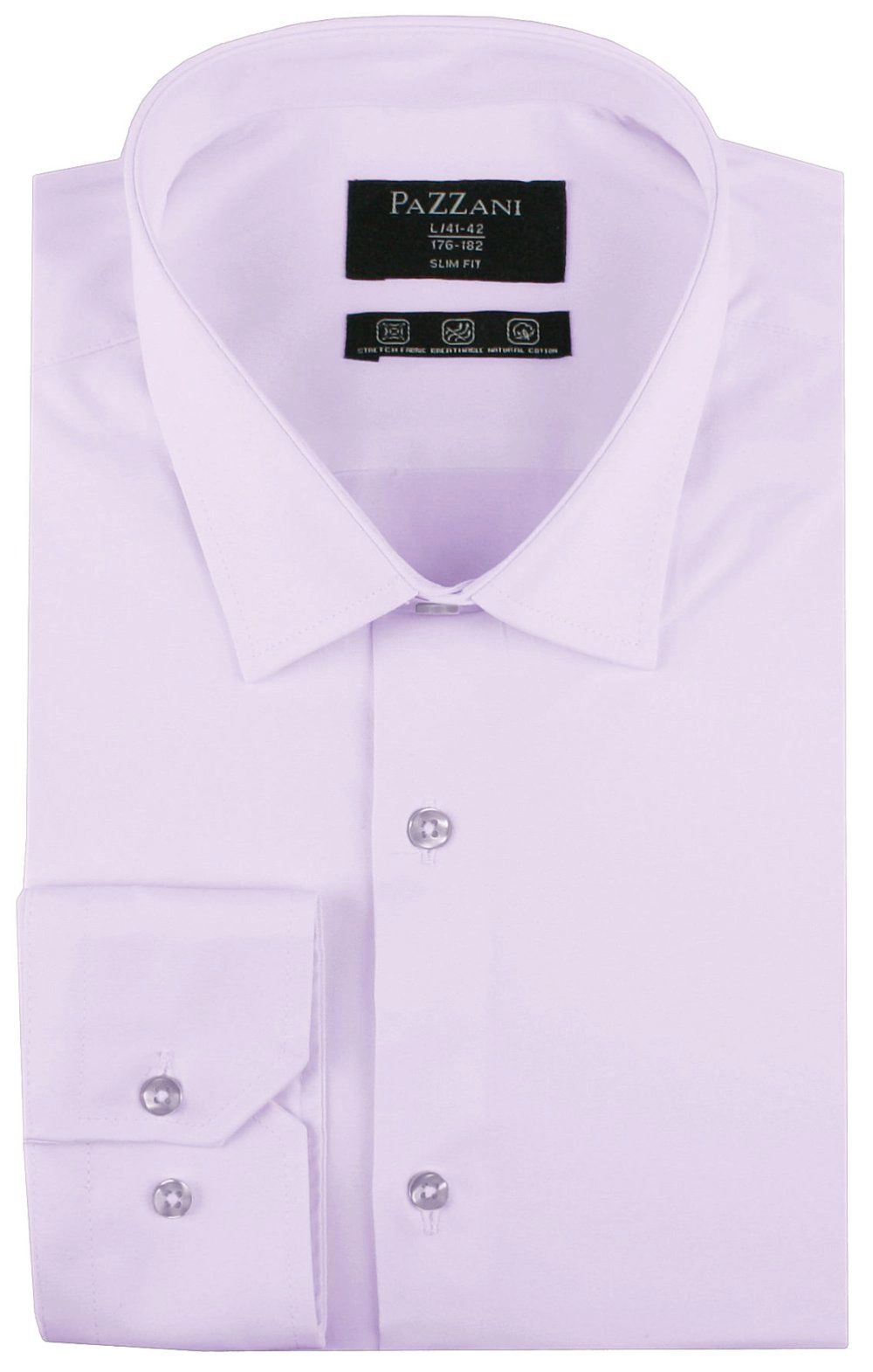 Elegancka koszula o wyszczuplonym (taliowanym) kroju z elastycznej tkaniny opartej w 97% na naturalnej bawełnie. Uszyta z dbałością o detale takie jak np. kryty guzik pod kołnierzem (tzw. button-down). Wysokogatunkowy skład materiału gwarantuje wygodę i uczucie oddychania tkaniny, zaś dodatek elastanu stanowi o jej elastyczności oraz łatwości prasowania.