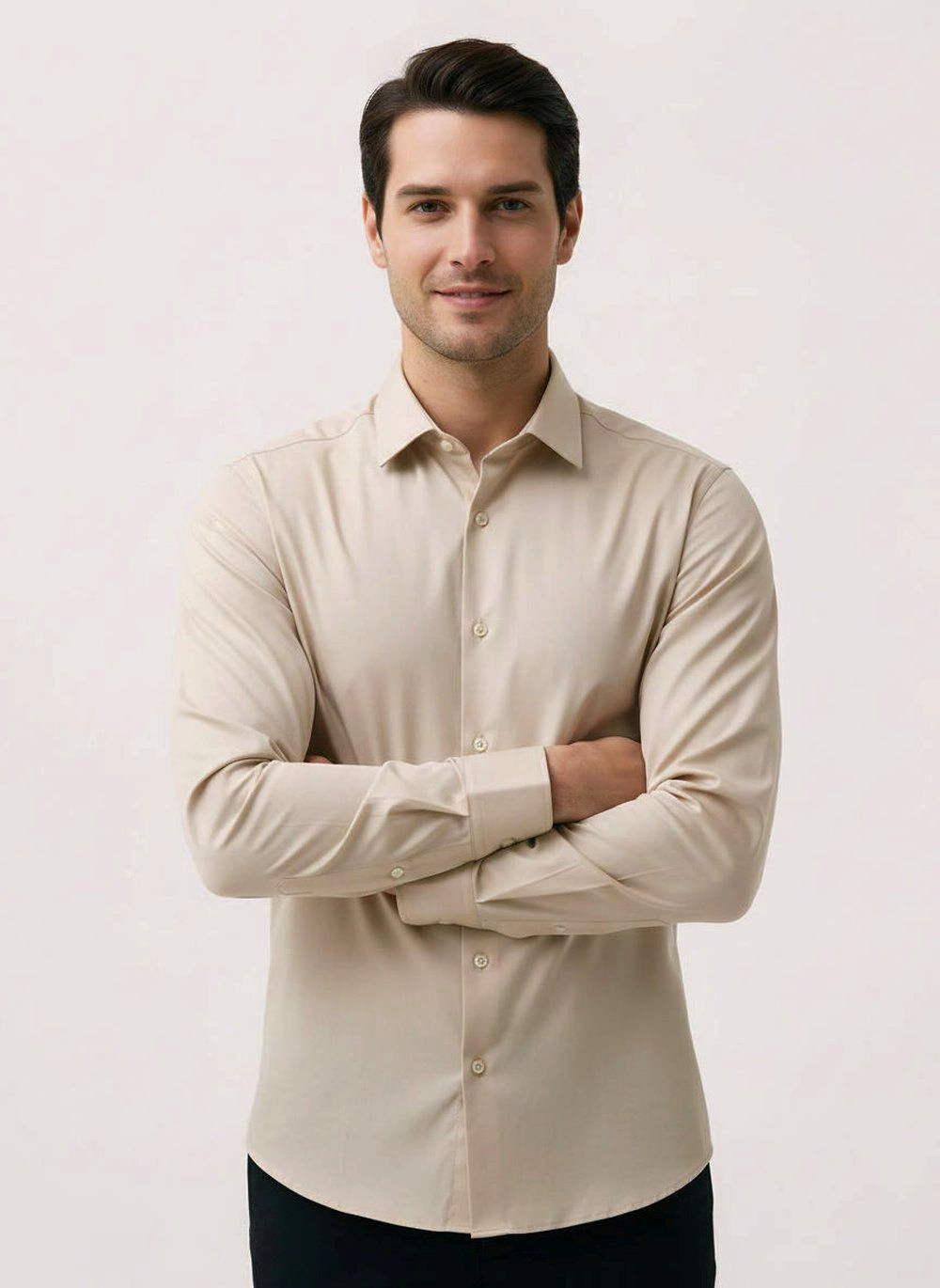 Jednokolorowa, Bawełniana Koszula o Prostym Kroju - Beżowa