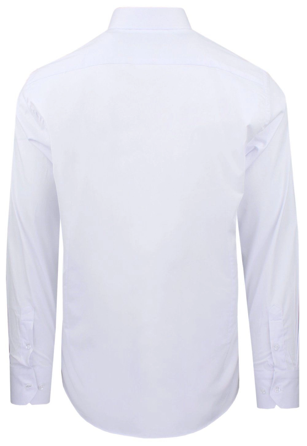 Elegancka koszula o prostym (regularnym) kroju z elastycznej tkaniny opartej w 97% na naturalnej bawełnie. Uszyta z dbałością o detale takie jak np. kryty guzik pod kołnierzem (tzw. button-down). Wysokogatunkowy skład materiału gwarantuje wygodę i uczucie oddychania tkaniny, zaś dodatek elastanu stanowi o jej elastyczności oraz łatwości prasowania.