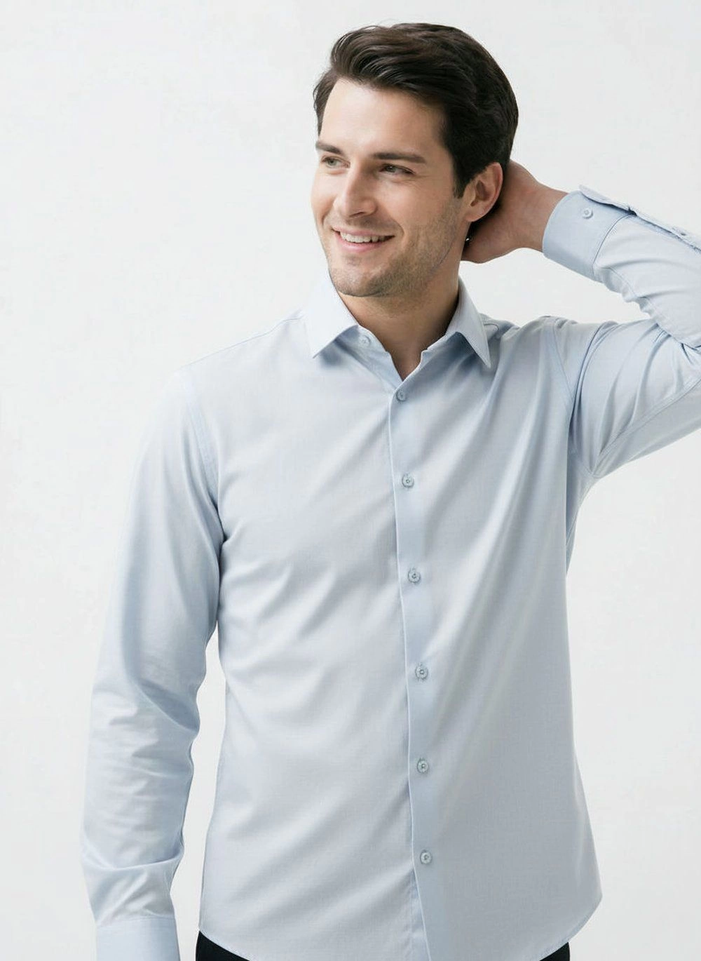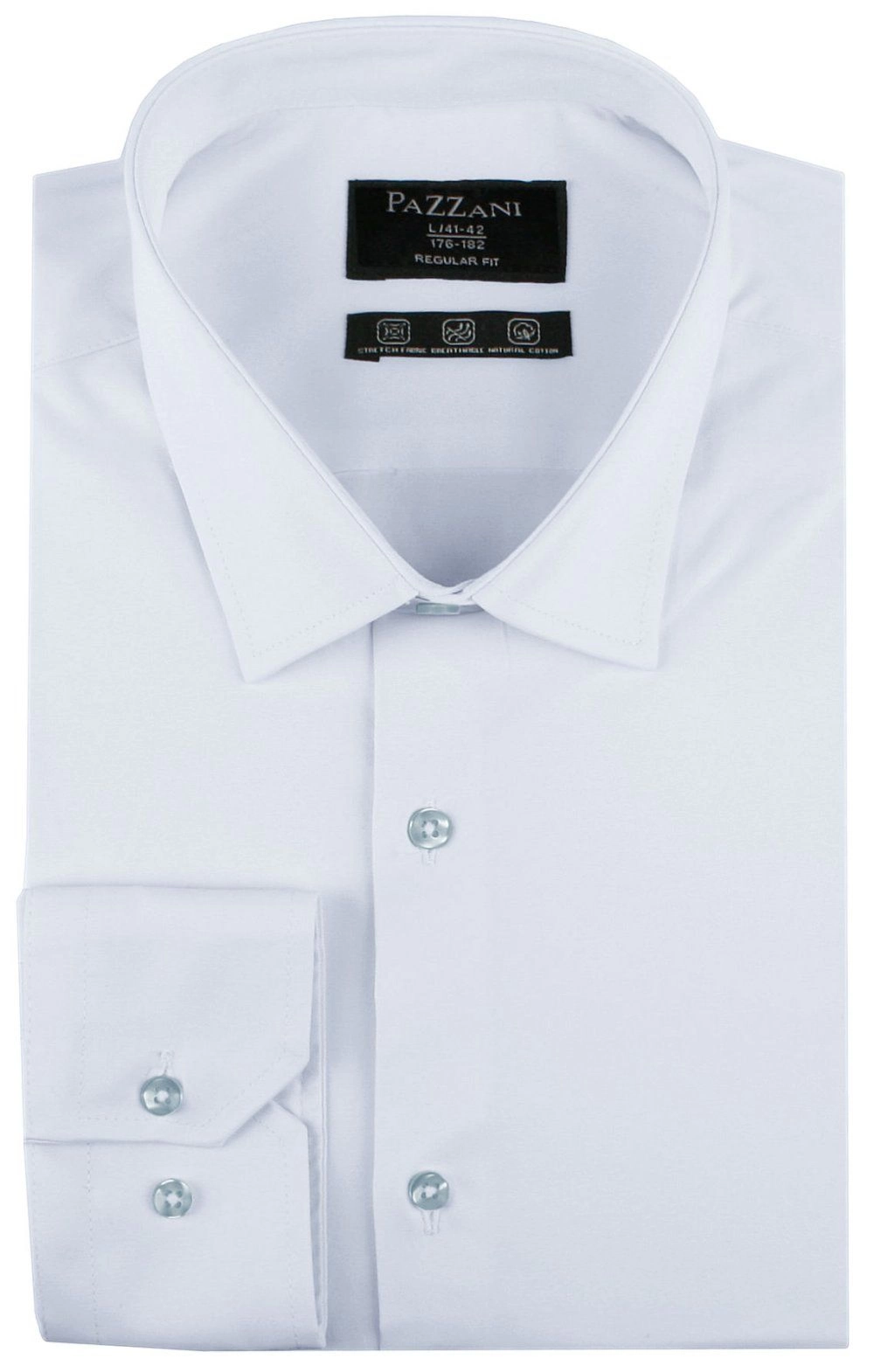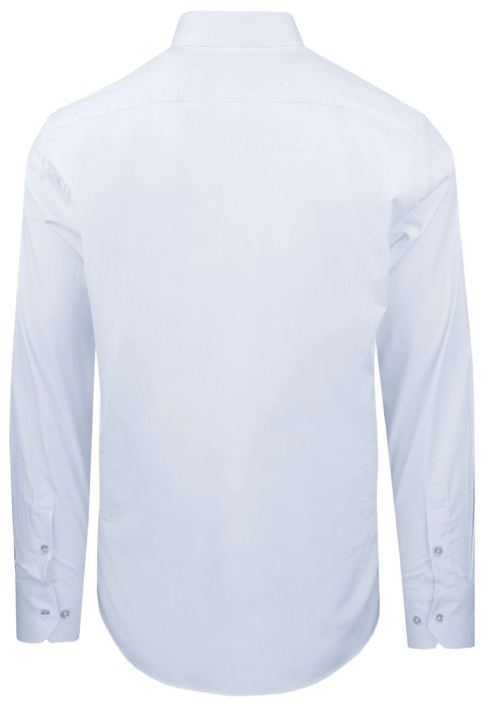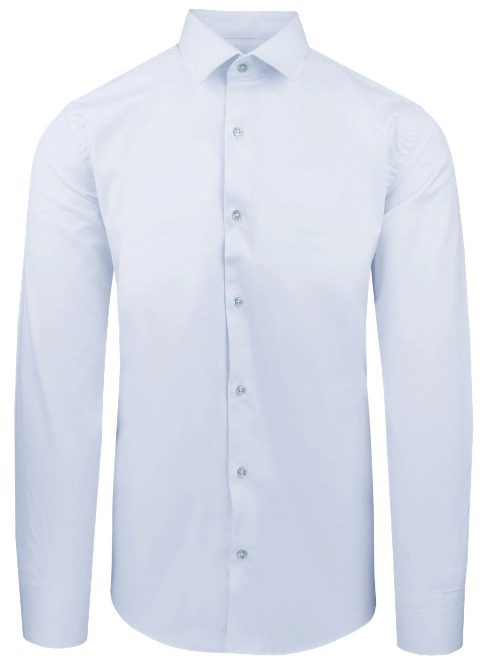 Elegancka koszula o prostym (regularnym) kroju z elastycznej tkaniny opartej w 97% na naturalnej bawełnie. Uszyta z dbałością o detale takie jak np. kryty guzik pod kołnierzem (tzw. button-down). Wysokogatunkowy skład materiału gwarantuje wygodę i uczucie oddychania tkaniny, zaś dodatek elastanu stanowi o jej elastyczności oraz łatwości prasowania.