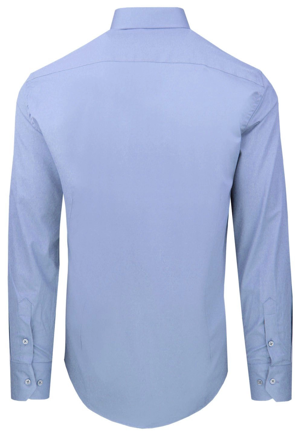 Elegancka koszula o prostym (regularnym) kroju z elastycznej tkaniny opartej w 97% na naturalnej bawełnie. Uszyta z dbałością o detale takie jak np. kryty guzik pod kołnierzem (tzw. button-down). Wysokogatunkowy skład materiału gwarantuje wygodę i uczucie oddychania tkaniny, zaś dodatek elastanu stanowi o jej elastyczności oraz łatwości prasowania.