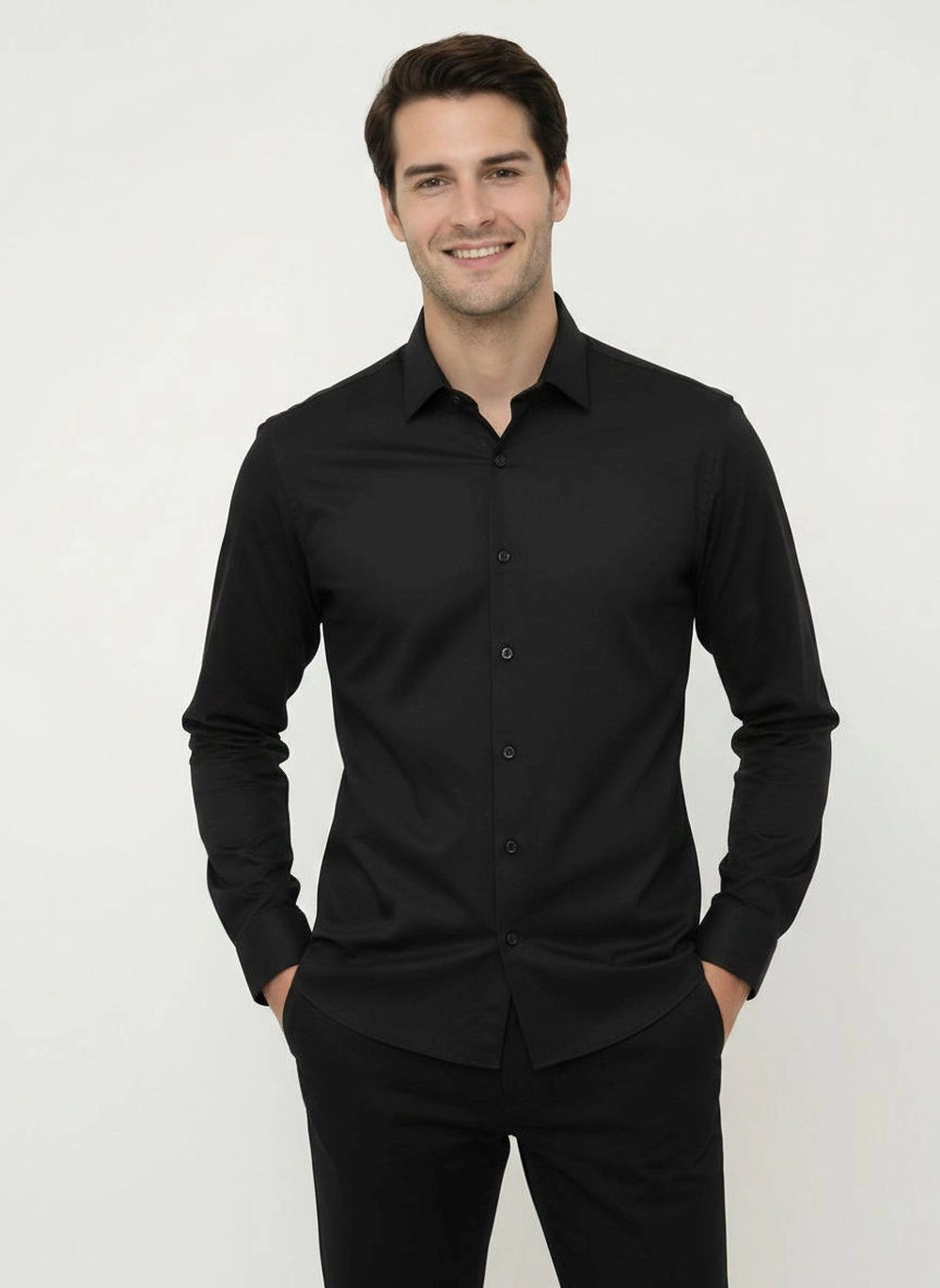 Jednokolorowa, Bawełniana Koszula o Prostym Kroju - Czarna