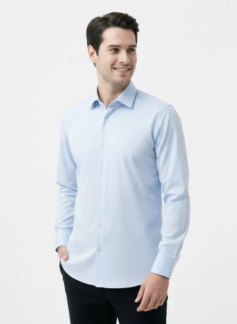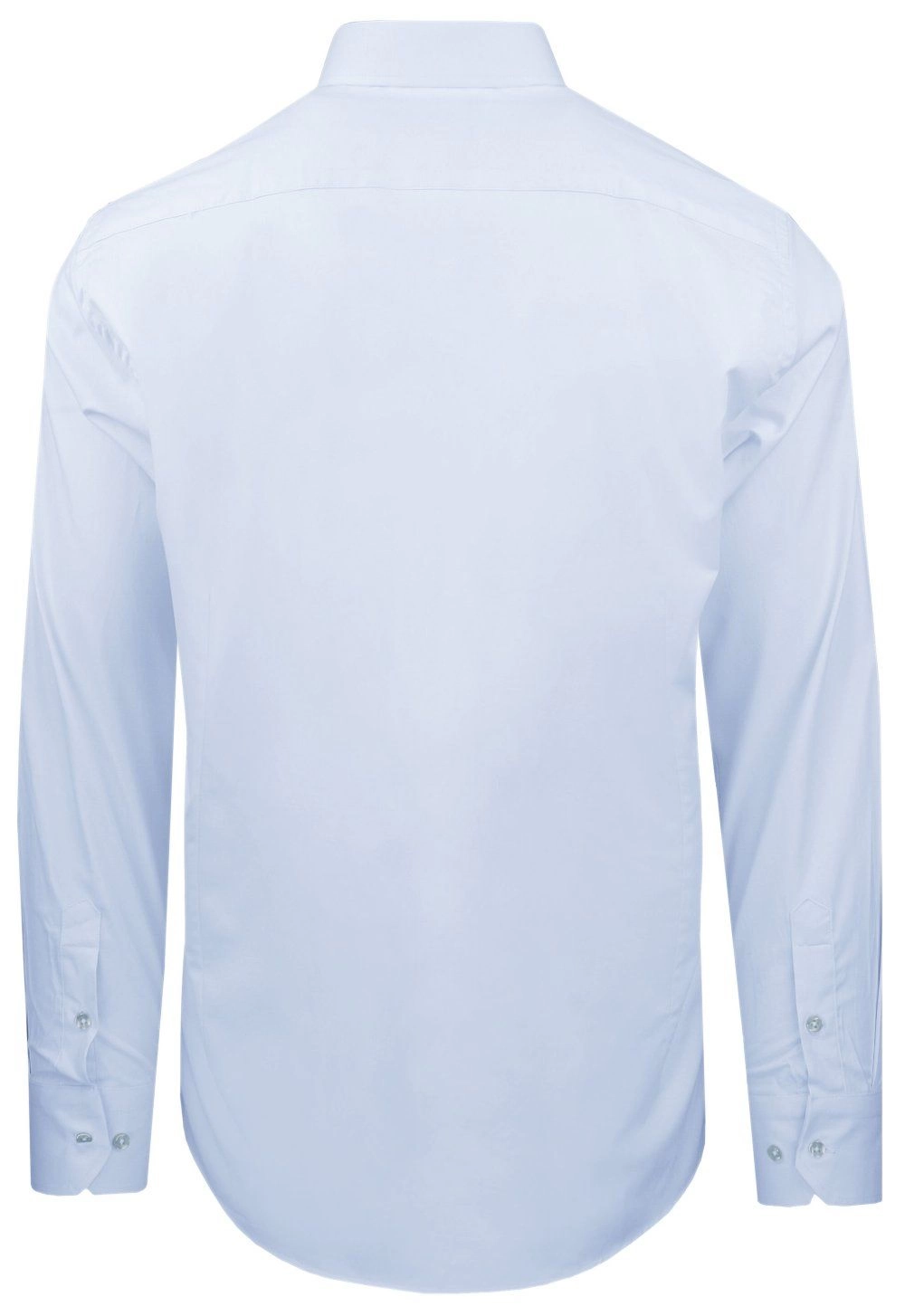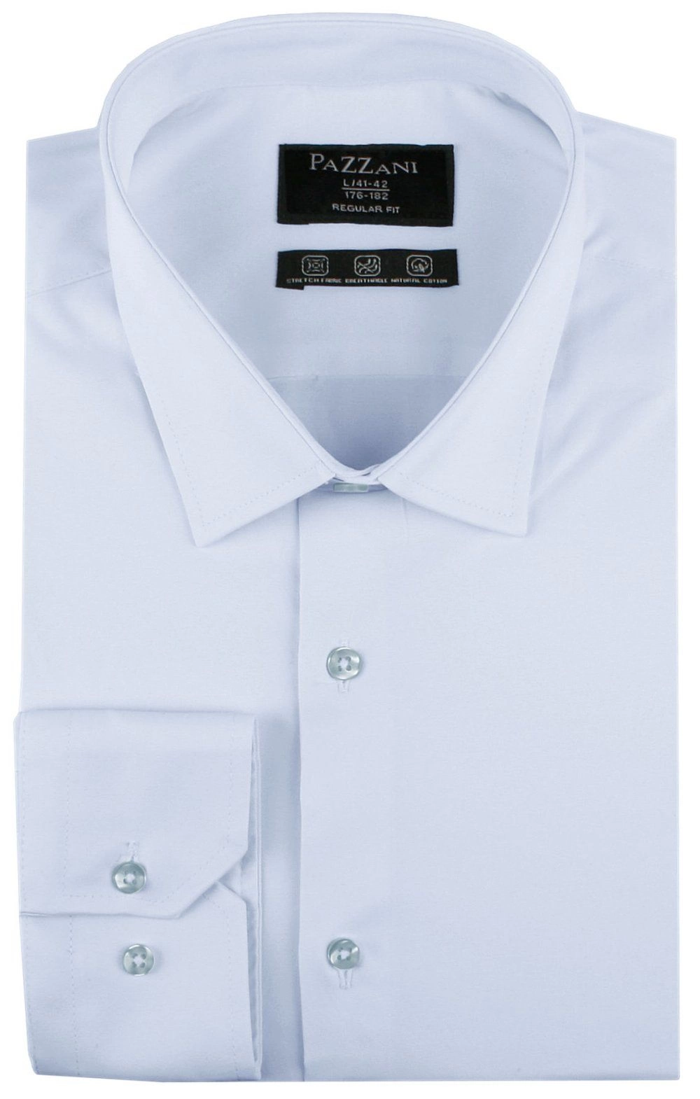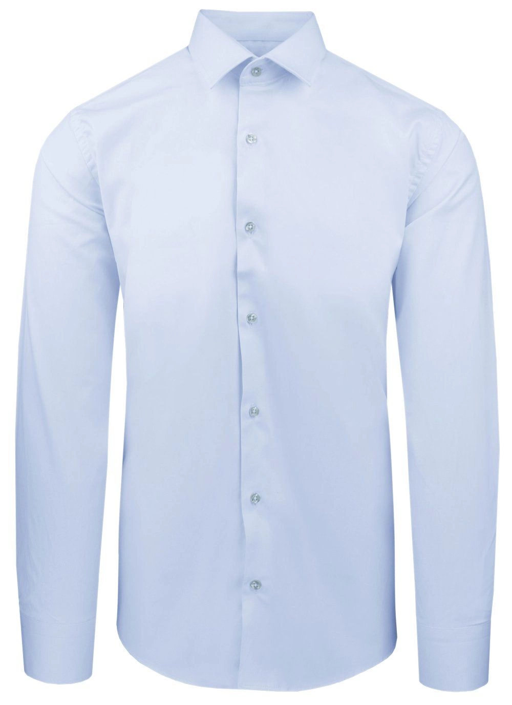 Elegancka koszula o prostym (regularnym) kroju z elastycznej tkaniny opartej w 97% na naturalnej bawełnie. Uszyta z dbałością o detale takie jak np. kryty guzik pod kołnierzem (tzw. button-down). Wysokogatunkowy skład materiału gwarantuje wygodę i uczucie oddychania tkaniny, zaś dodatek elastanu stanowi o jej elastyczności oraz łatwości prasowania.