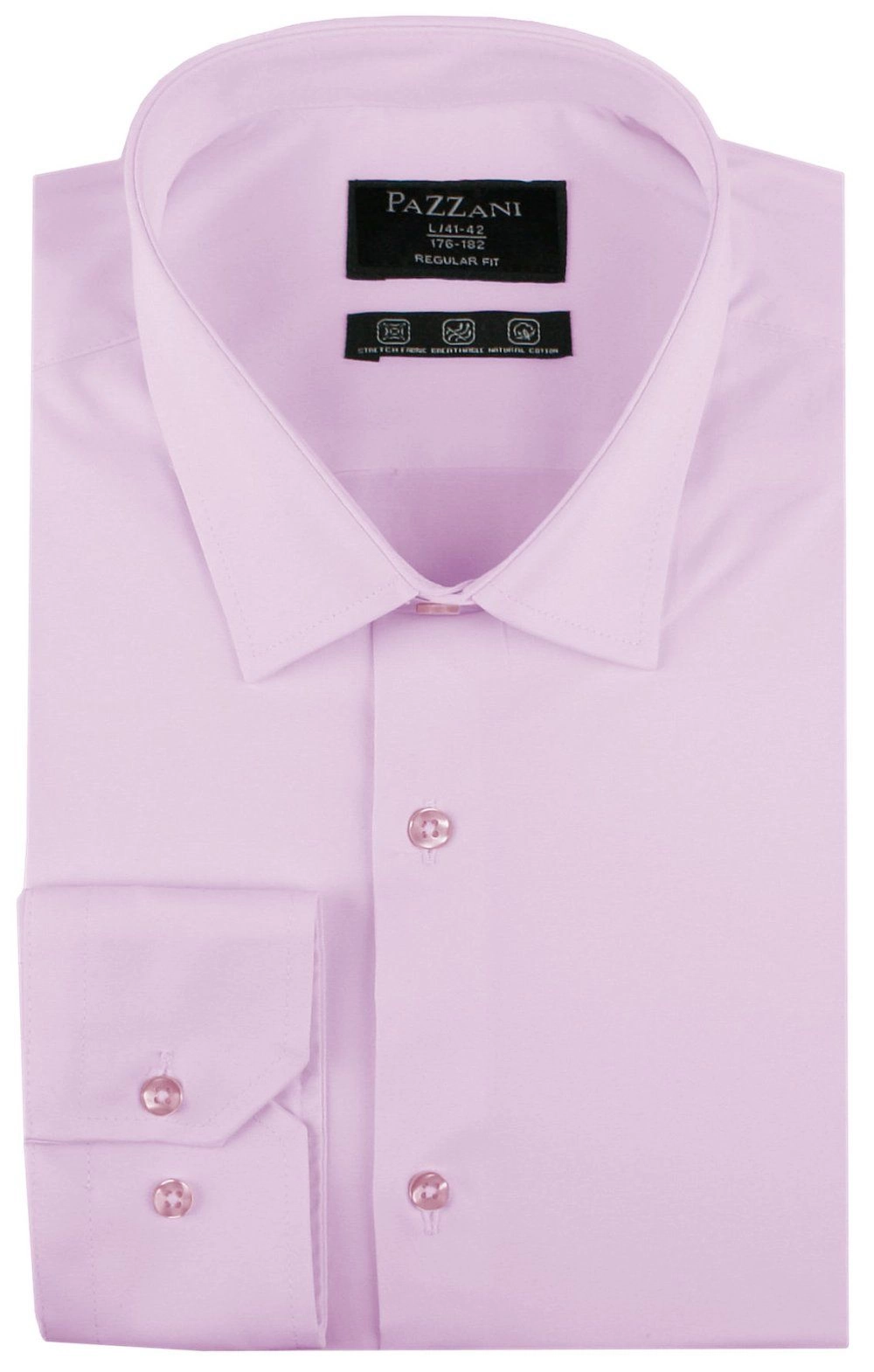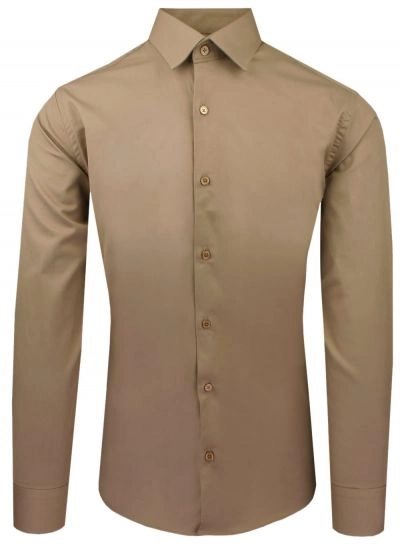 Elegancka koszula o prostym (regularnym) kroju z elastycznej tkaniny opartej w 97% na naturalnej bawełnie. Uszyta z dbałością o detale takie jak np. kryty guzik pod kołnierzem (tzw. button-down). Wysokogatunkowy skład materiału gwarantuje wygodę i uczucie oddychania tkaniny, zaś dodatek elastanu stanowi o jej elastyczności oraz łatwości prasowania.