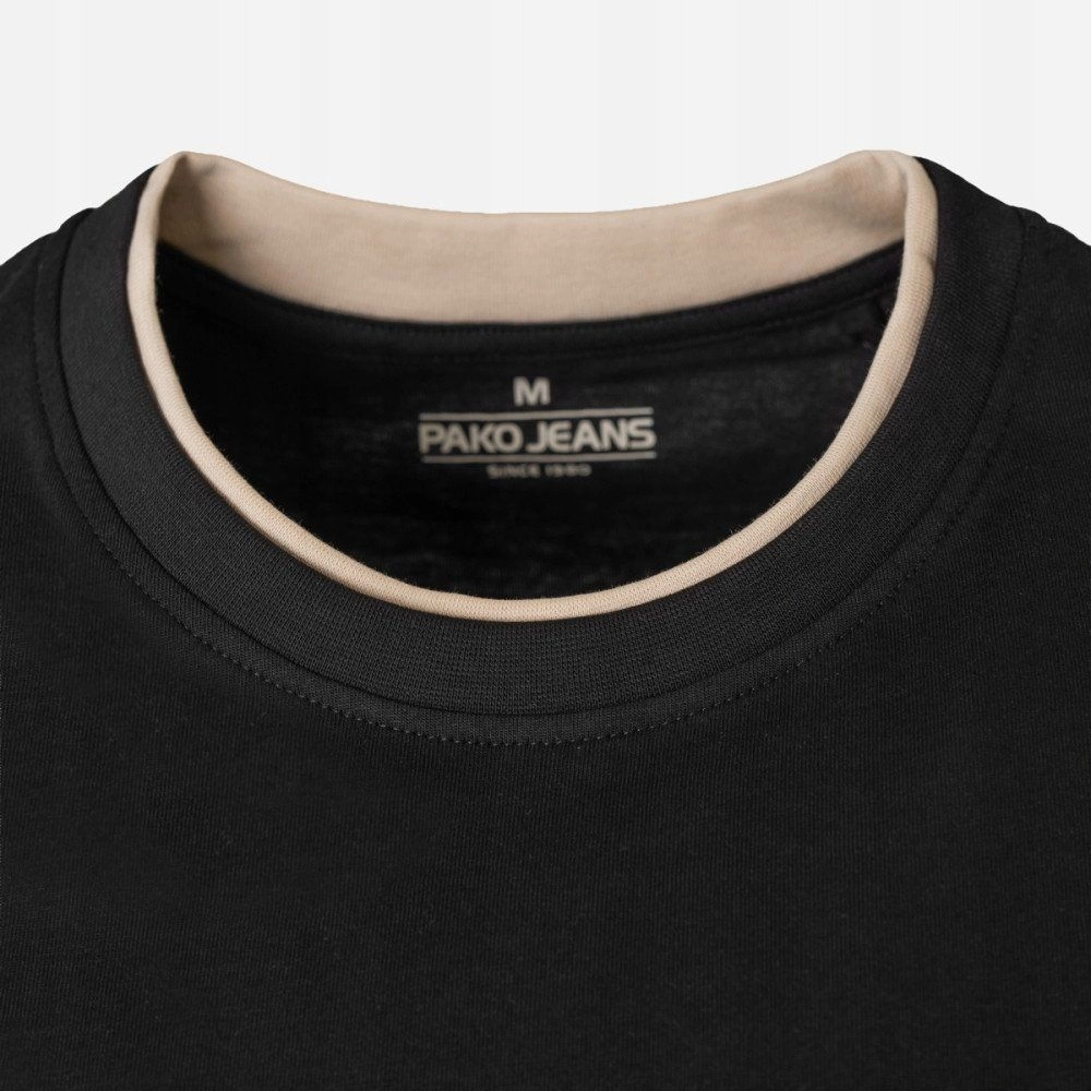 Jednokolorowa Koszulka z Lamówką - Pako Jeans - Czarny