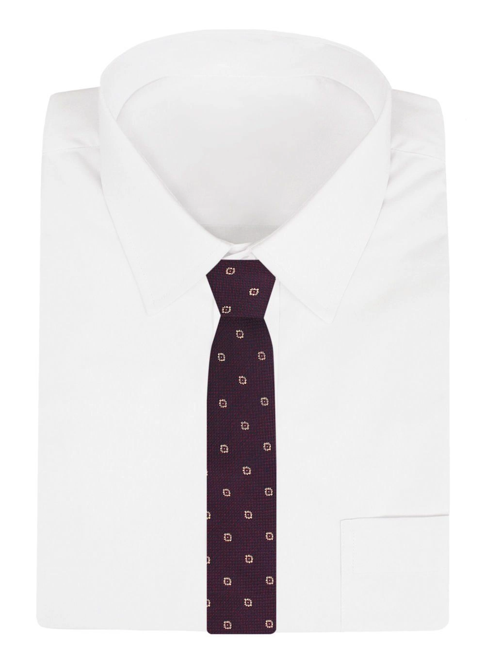 Jedwabno-Wełniany Krawat Męski - His Story - Bordo w Groszki