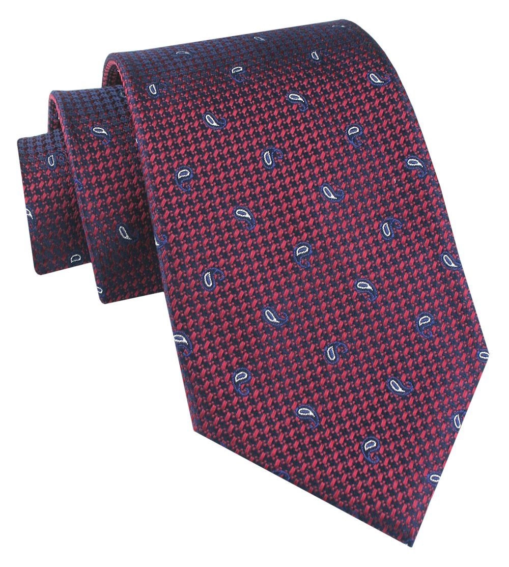 Jedwabny Krawat Męski - His Story - Głęboka Czerwień, Łezki (Paisley)