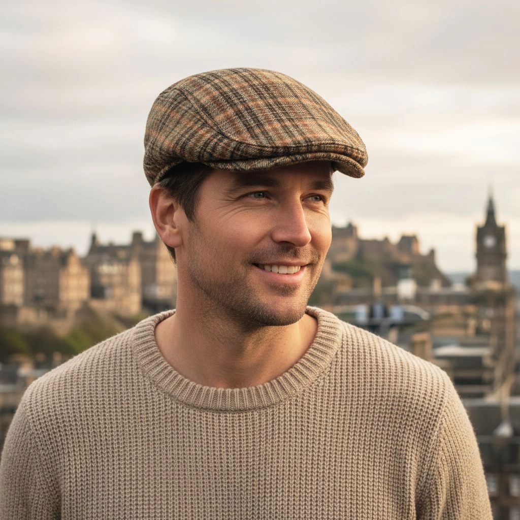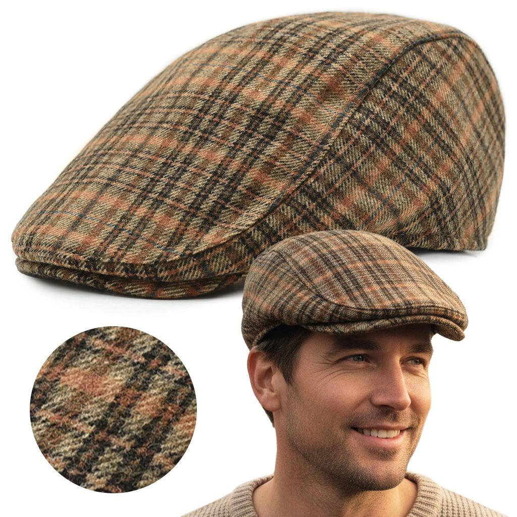 Jesienno-Zimowy Kaszkiet Wełniany - Pako Jeans - Beż, Drobna Kratka